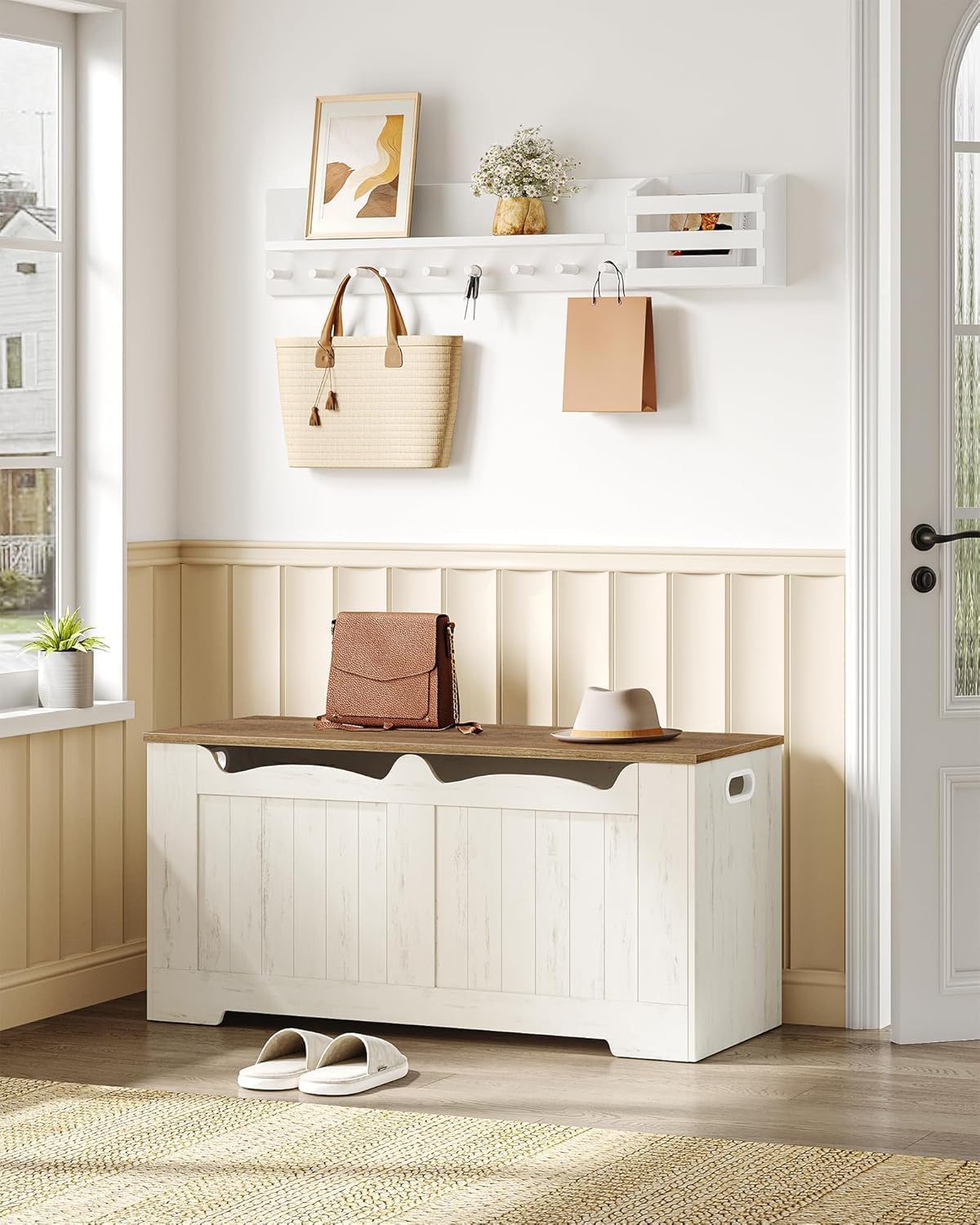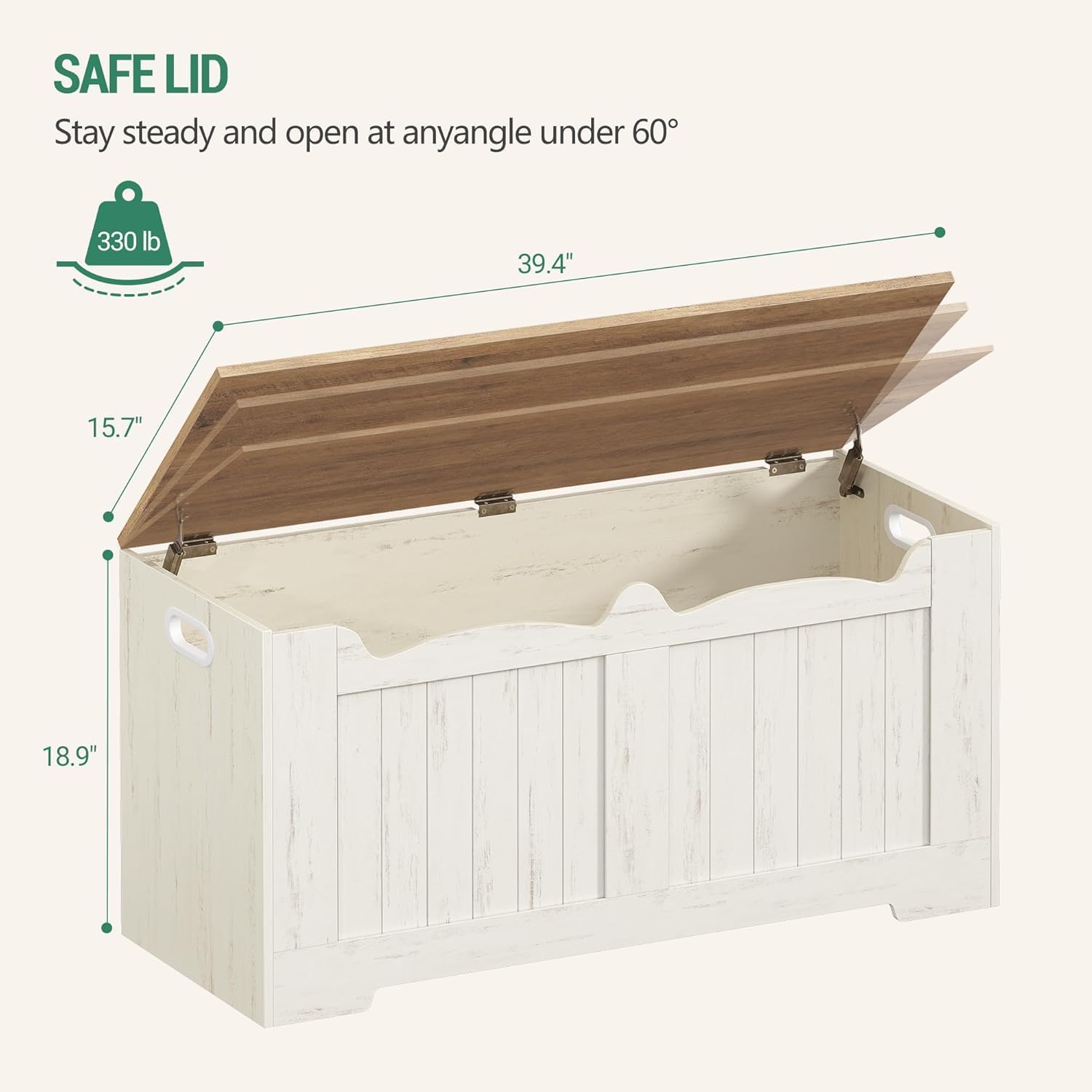 39.4" Storage Chest, Storage Bench Trunk with 2 Safety Hinge, Wooden Box, Lift-Top Chest Organizer, Shoe Bench for Entryway, Bedroom, Living Room, White and Brown SB01014B