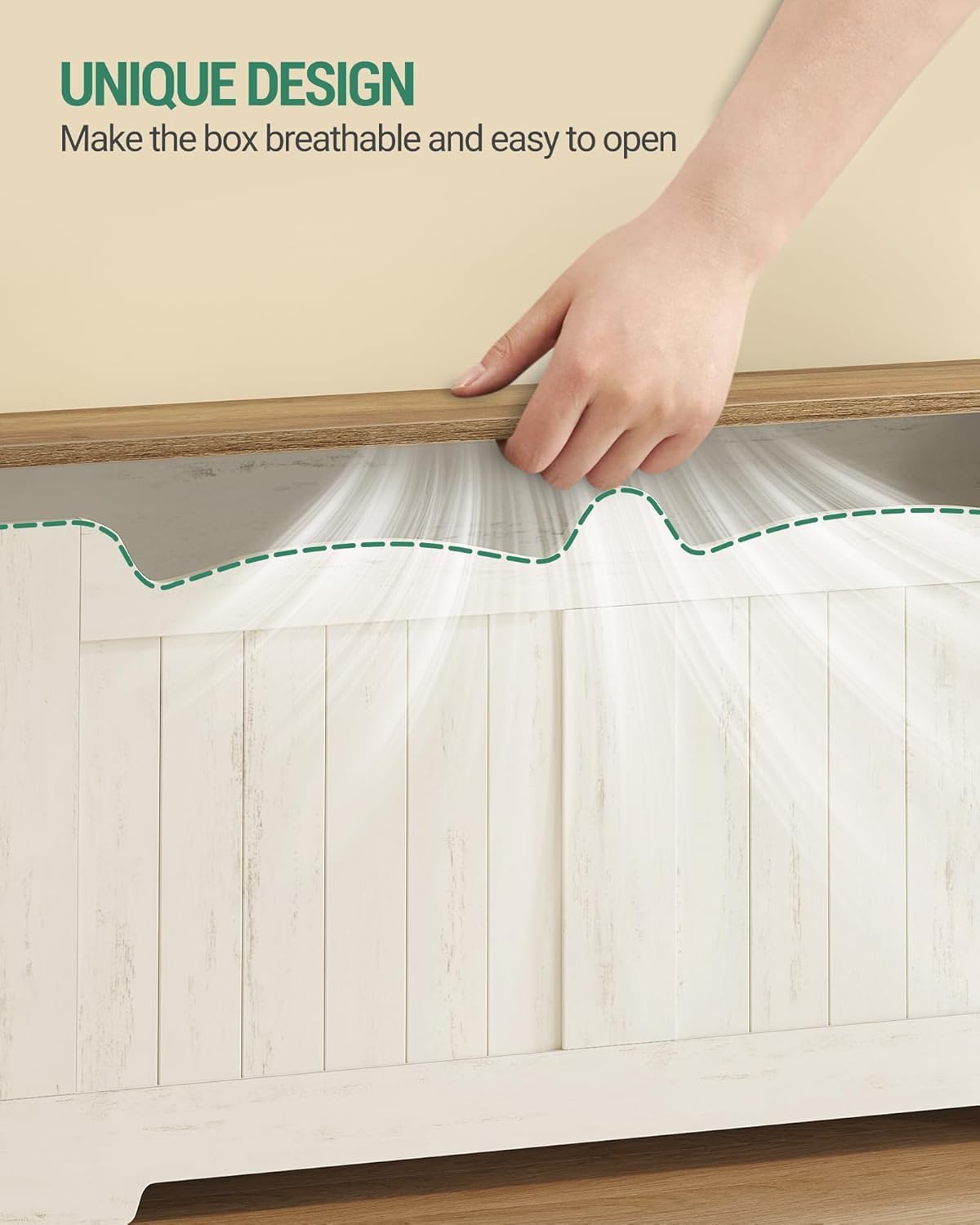 - Stabilized and Safe: Made of premium particleboard, this wooden storage bench is much more stabilized, 2 secure hinges acllow the lid to hover securely, making it safer for daily use