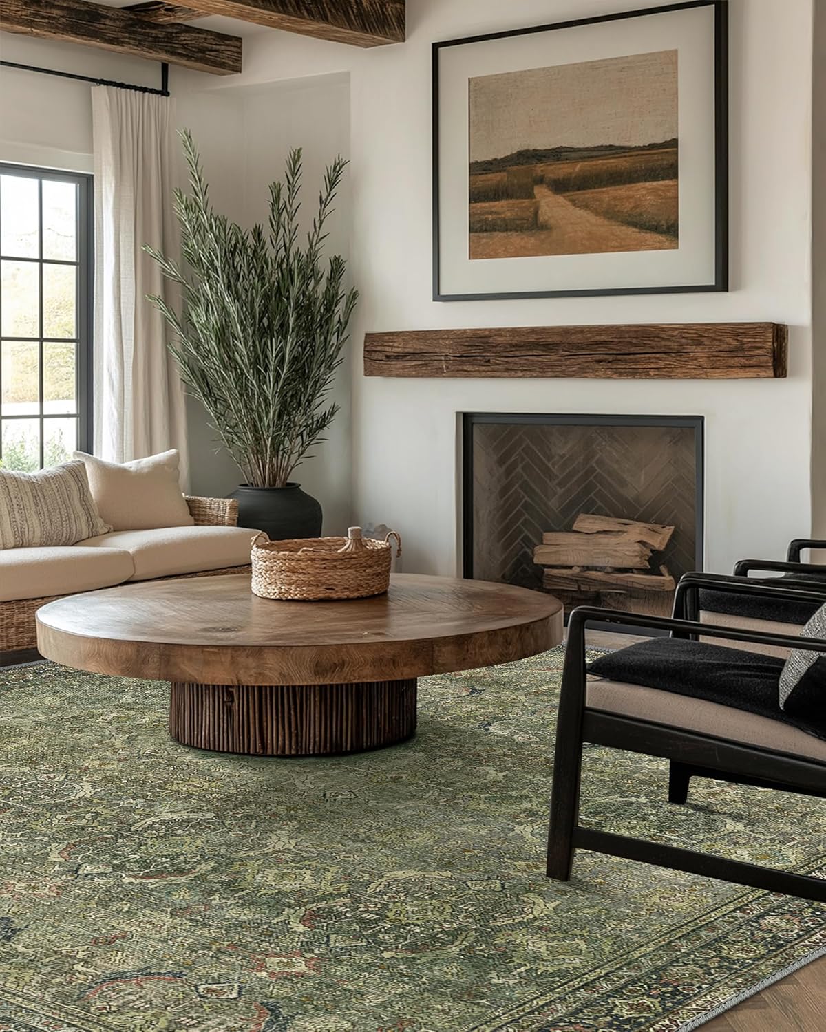 - Timeless Vintage Design:This green rug elegantly combines a timeless floral design with a muted color palette to infuse your living space with a touch of vintage charm. Its unique texture and patterns add a layer of sophistication and comfort to any room, making it a versatile addition to both modern and traditional decors.