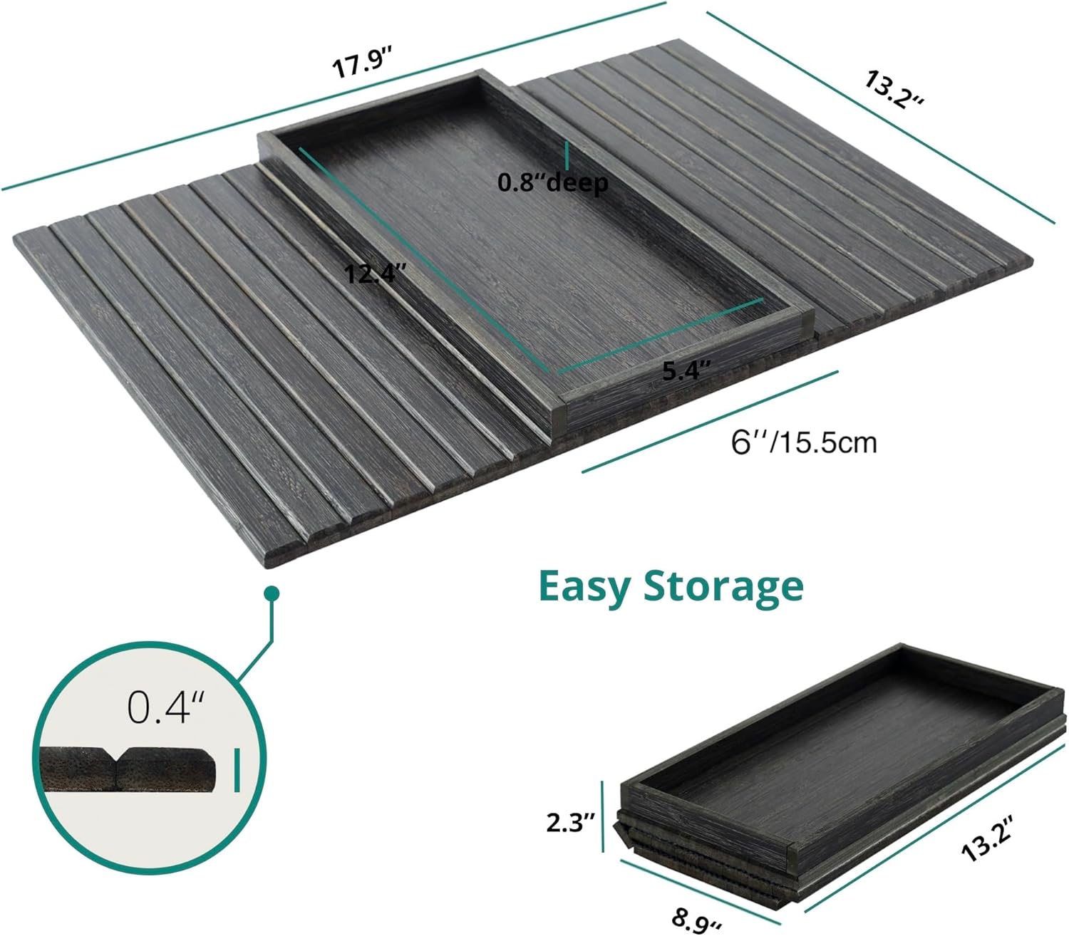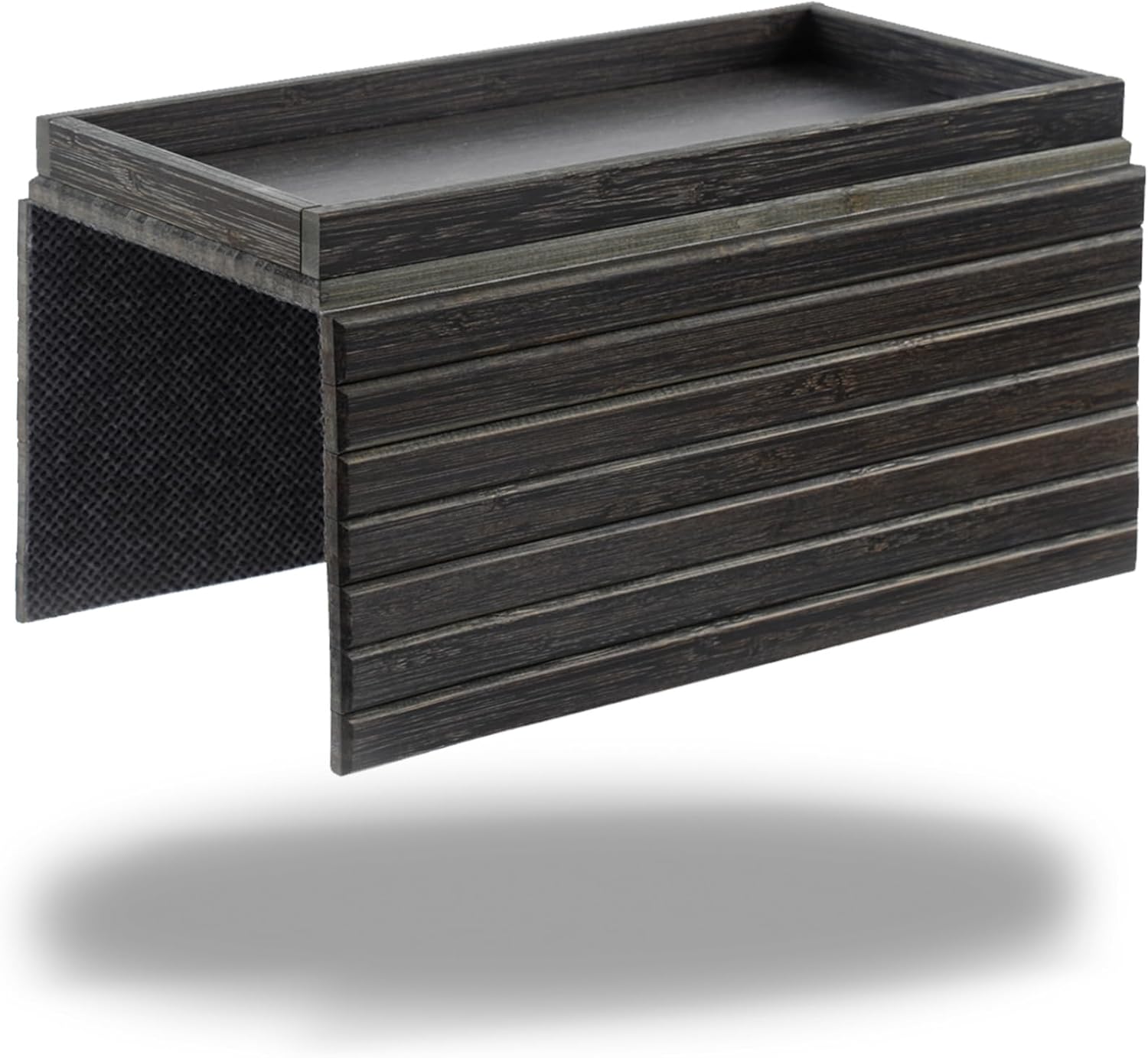 DETOR Couch Arm Tray, TV Tray with Capacious 12.4" x 5.4" Storage Box, Bamboo Grain Stained Black Color, Enhanced Nonslip Felt Bottom, Sturdy Bamboo Slats Material | for Armrests 6" and Wider