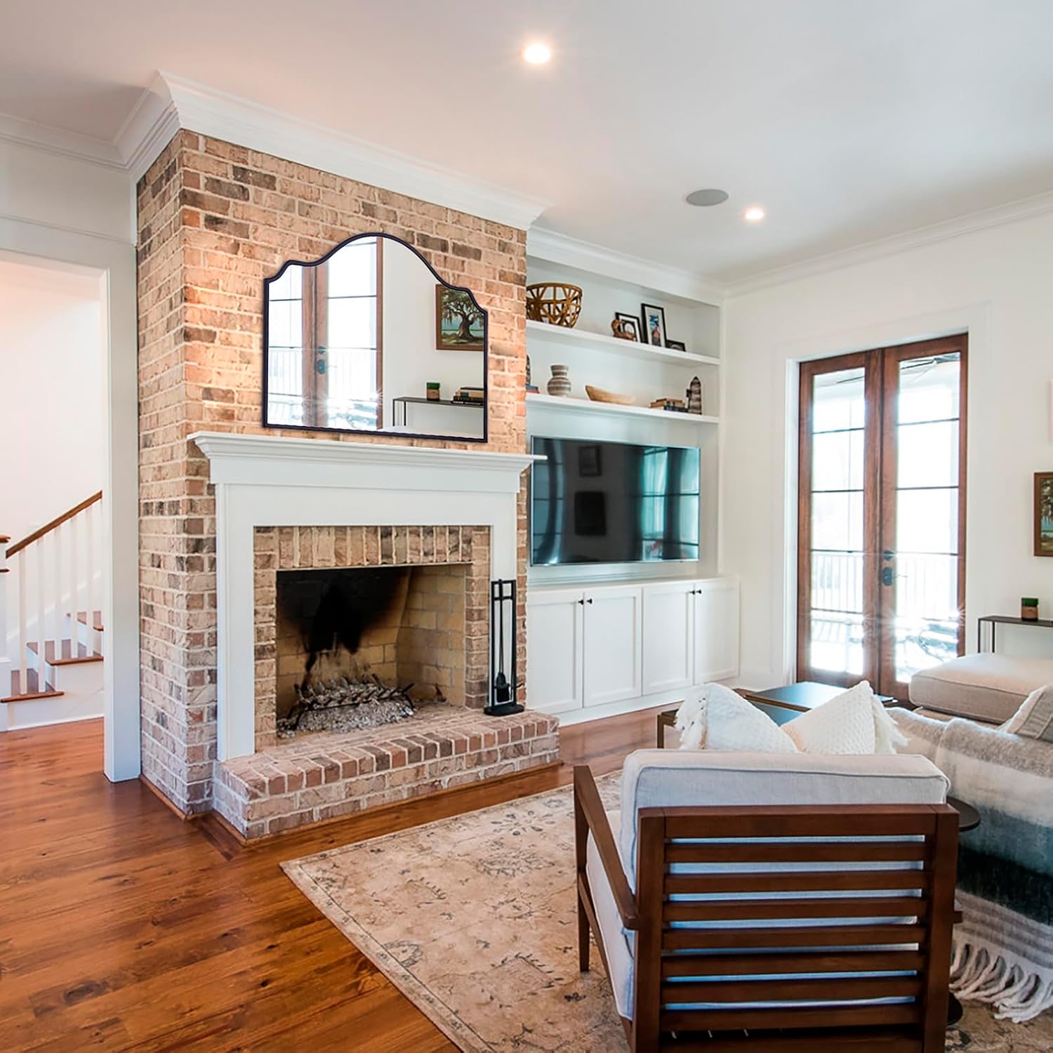 - 【Arched Design】Unique wall mirror decor with wooden frame creates antique and low profile atmosphere. Black arched frame increases stereoscopic and sense of reality. When light shines on smooth surface adds natural shadow, give a better sense of brightness and space.