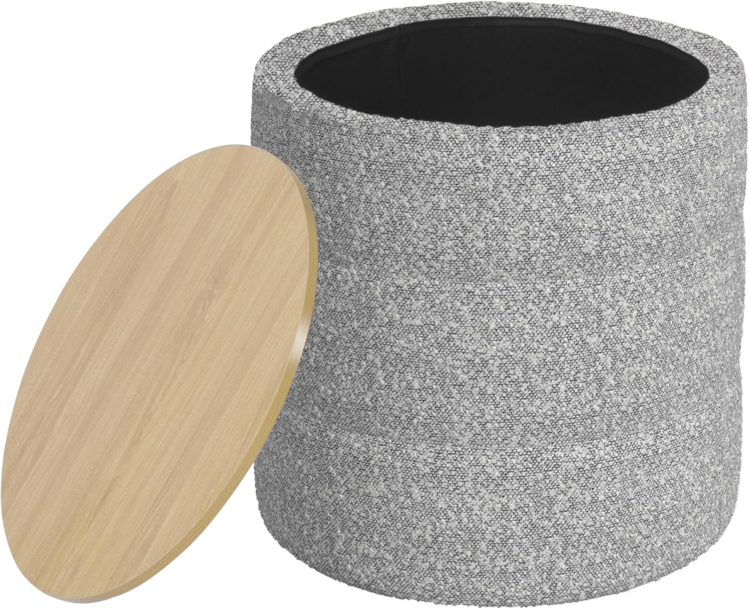 HomePop Channel Storage Ottoman with Wood Top - Cream Boucle with Gray Yarns