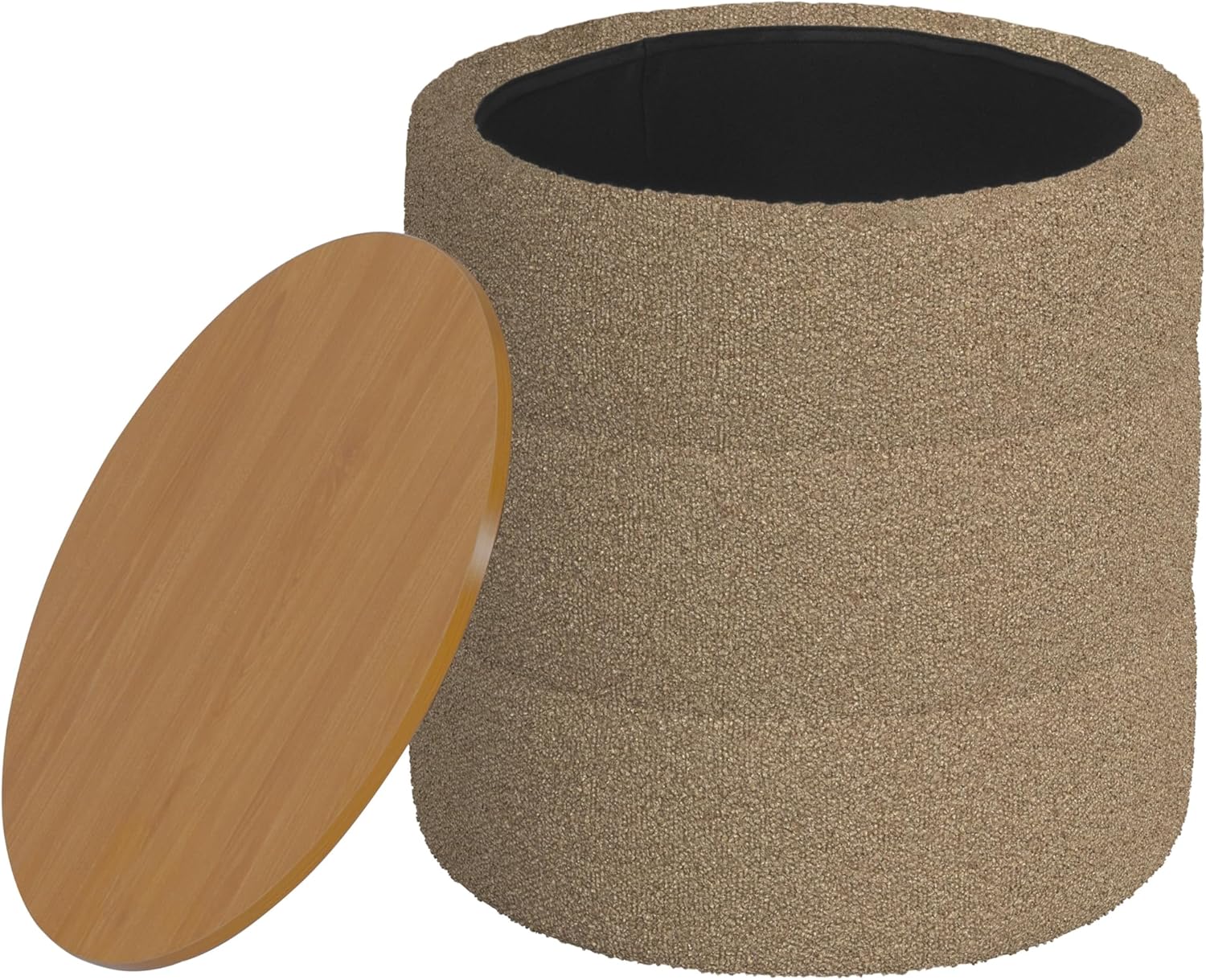 HomePop Channel Storage Ottoman with Wood Top - Brown Boucle