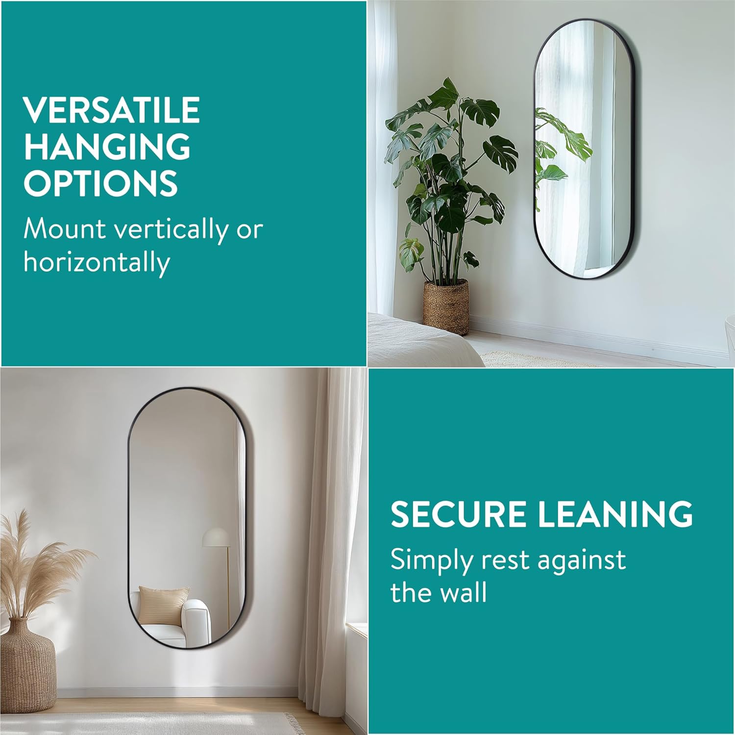- VERSATILE USE: Hang this full length mirror vertically or horizontally on your wall or simply lean it against the wall. This flexibility allows you to utilise the mirror in a way that best suits your space and needs.
