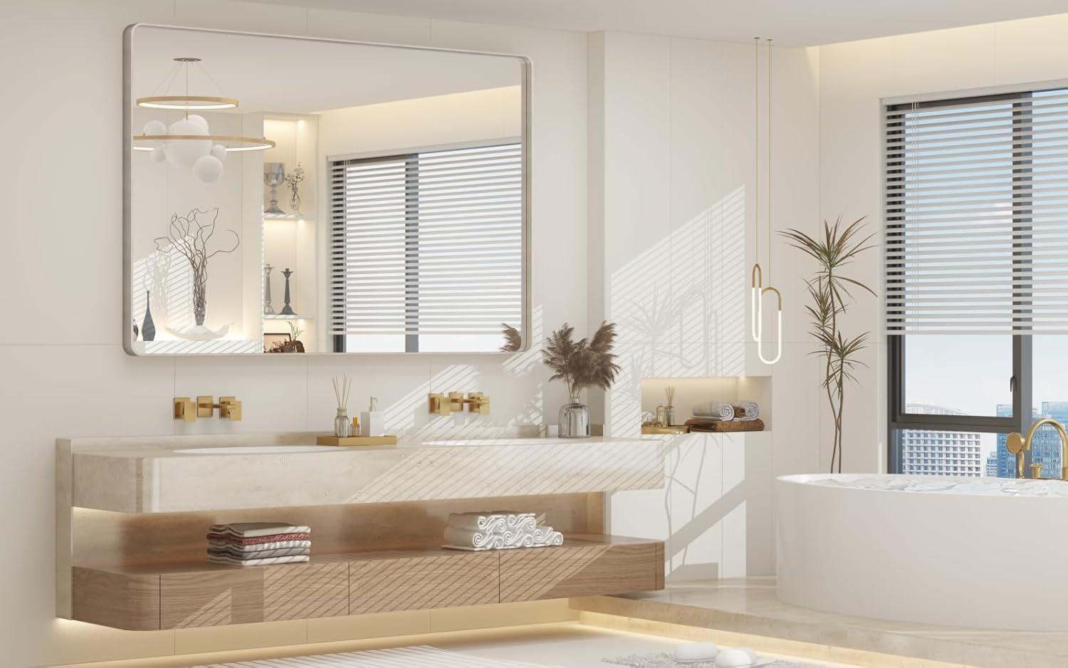 - HD Reflection and NO Distortion: Crafted with premium HD glass, our brushed silver bathroom mirror delivers exceptional clarity for true reflections. Its sleek modern design features crisp edges and an oxidation resistant finish that maintains its luxurious appearance while being effortless to clean.