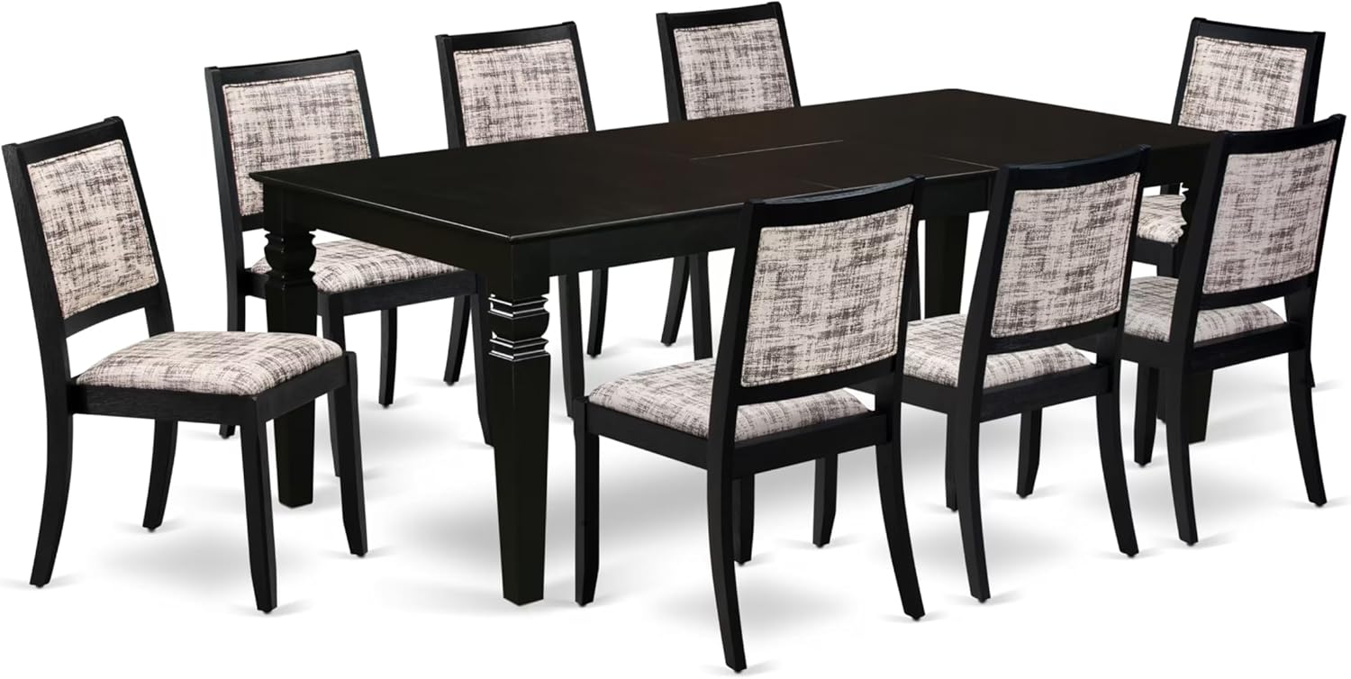 East West Furniture LGX29-BLK-30 -9 Piece Dining Set Includes a Rectangular Kitchen Table with Black Tabletop and 8 Stackable Polyester Fabric Chairs, Black