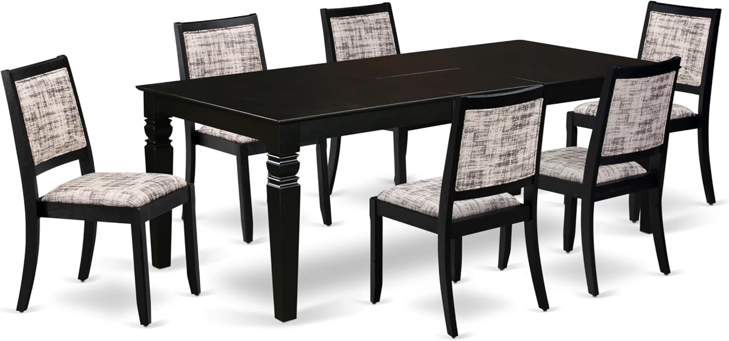 East West Furniture LGX27-BLK-30 -7 Piece Dining Set Includes a Rectangular Kitchen Table with Black Tabletop and 6 Stackable Polyester Fabric Chairs, Black