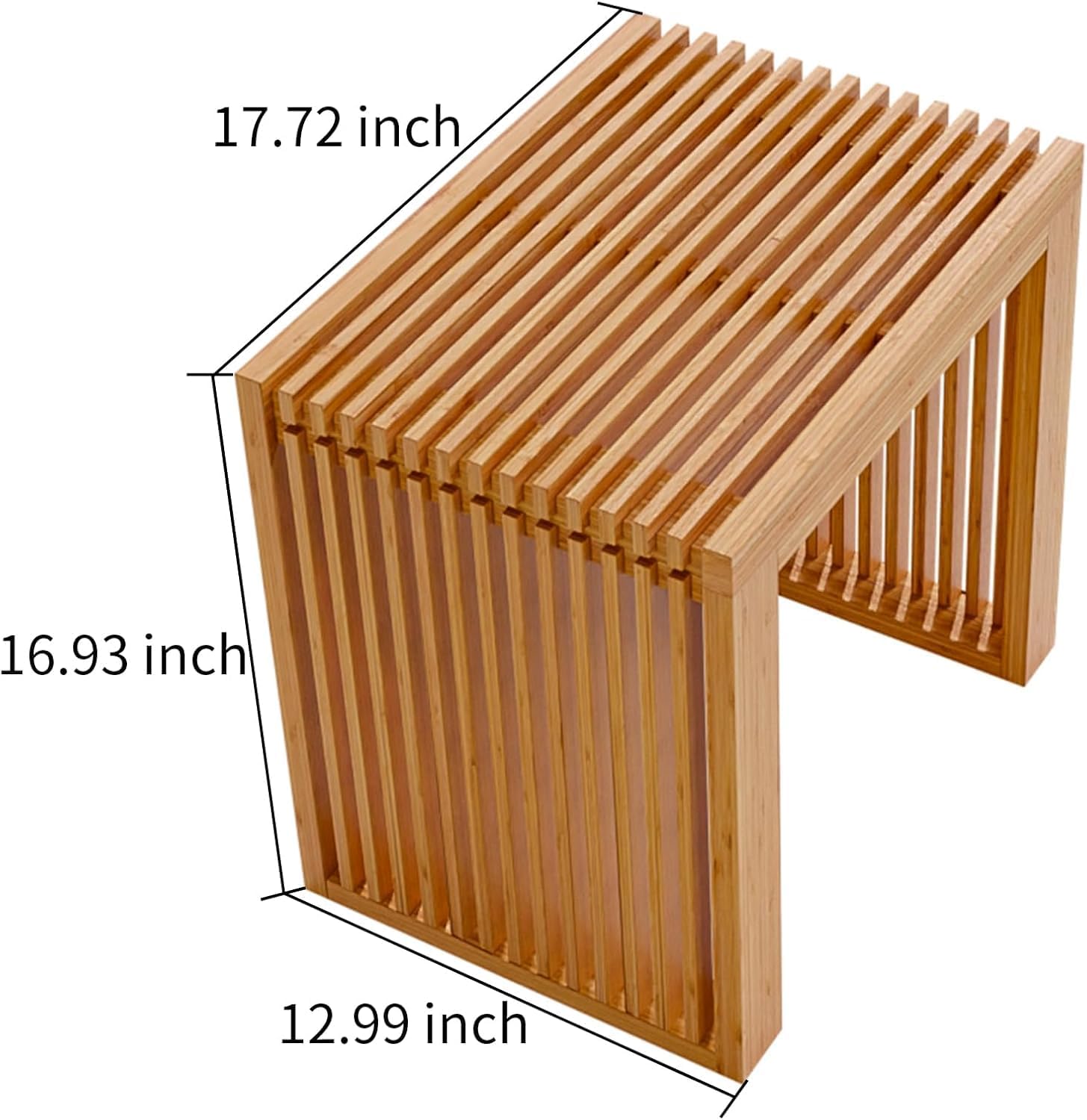 Small Bamboo Dining Bench, 17inch Farmhouse Decor Indoor Kitchen Table Bench, Entryway Shoe Rack Bench, Outdoor Bench, Solid Bamboo Benches for Living Room, Hallway, Bedroom, Bathroom