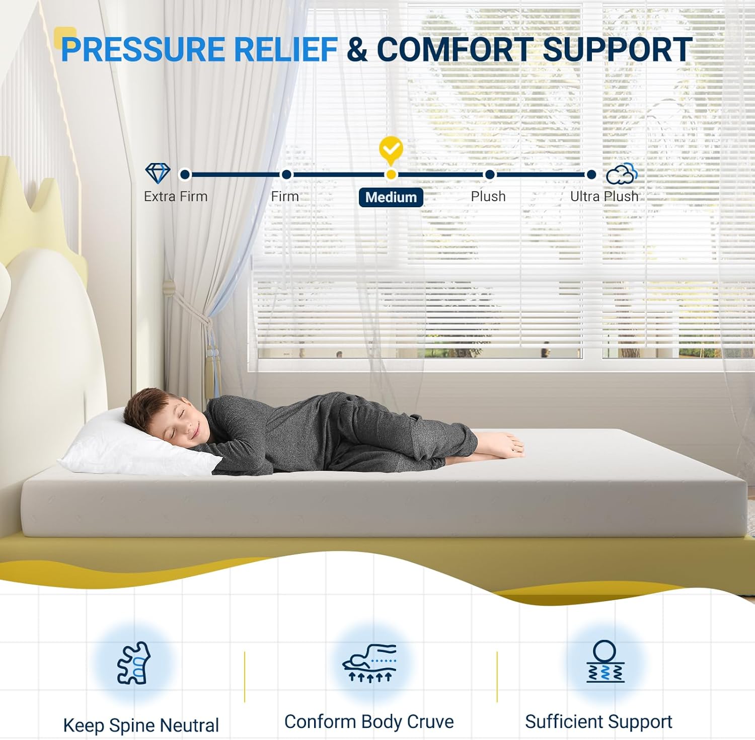 - PRESSURE RELIEF & STABLE SUPPORT: Combined 2" comfort foam and 4" high density foam base, our twin size mattress contours to your body for perssure relief and enhances additional support to avoid sinking. The edge support on both sides of the mattress is reinforced to prevent slipping when sitting on the bed edge. 6" twin foam mattresses accommodate with most back sleepers, stomach sleepers and side sleepers.