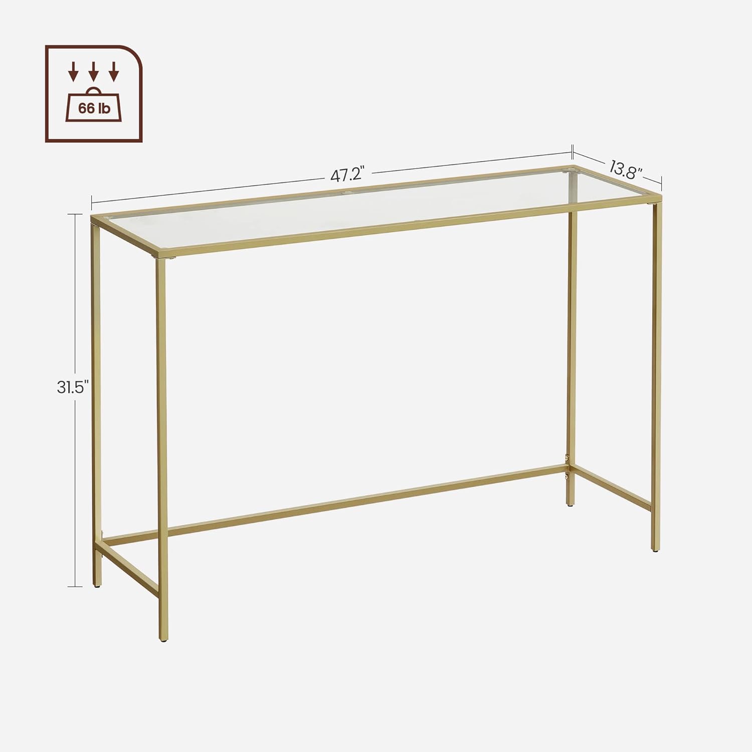 VASAGLE Console Tables Bundle - 47.2" Gold Metal and Glass Table and 39.4" Black Metal and Glass Table