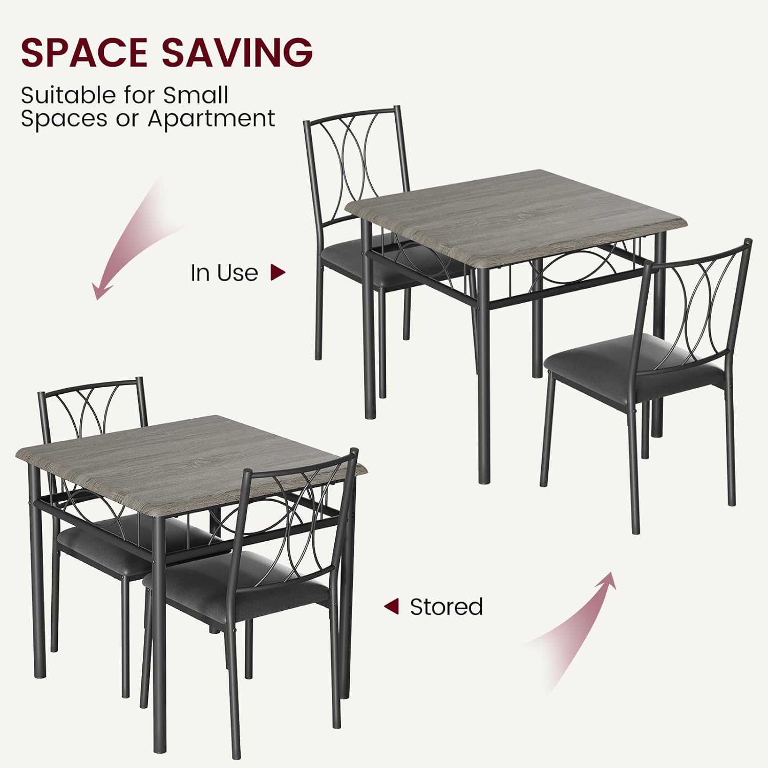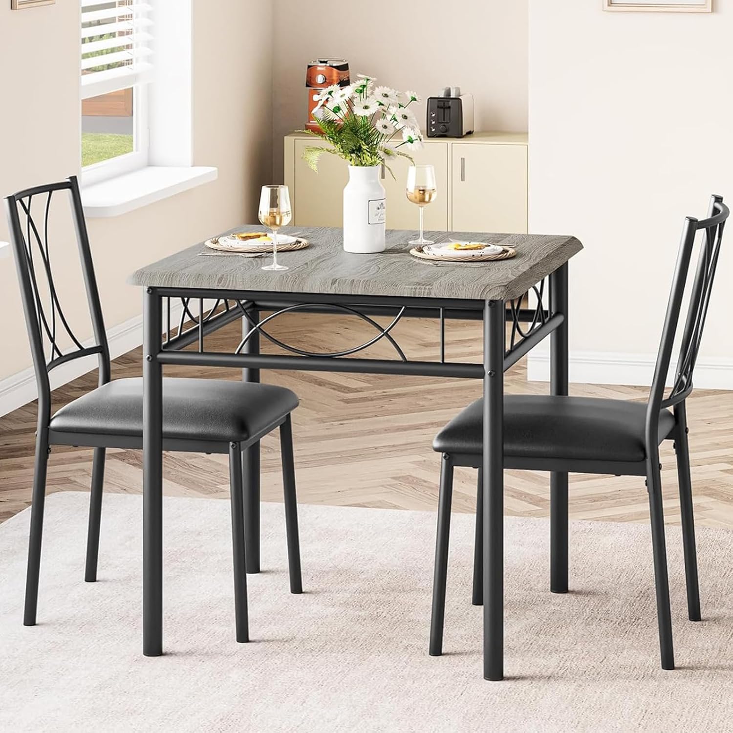 CABIHOME Dining Table Set for 2, 3 Piece Kitchen Table Set with 2 Upholstered Chairs, Square Kitchen Table Set for Small Space, Apartment, Dining Room, Retro Gray