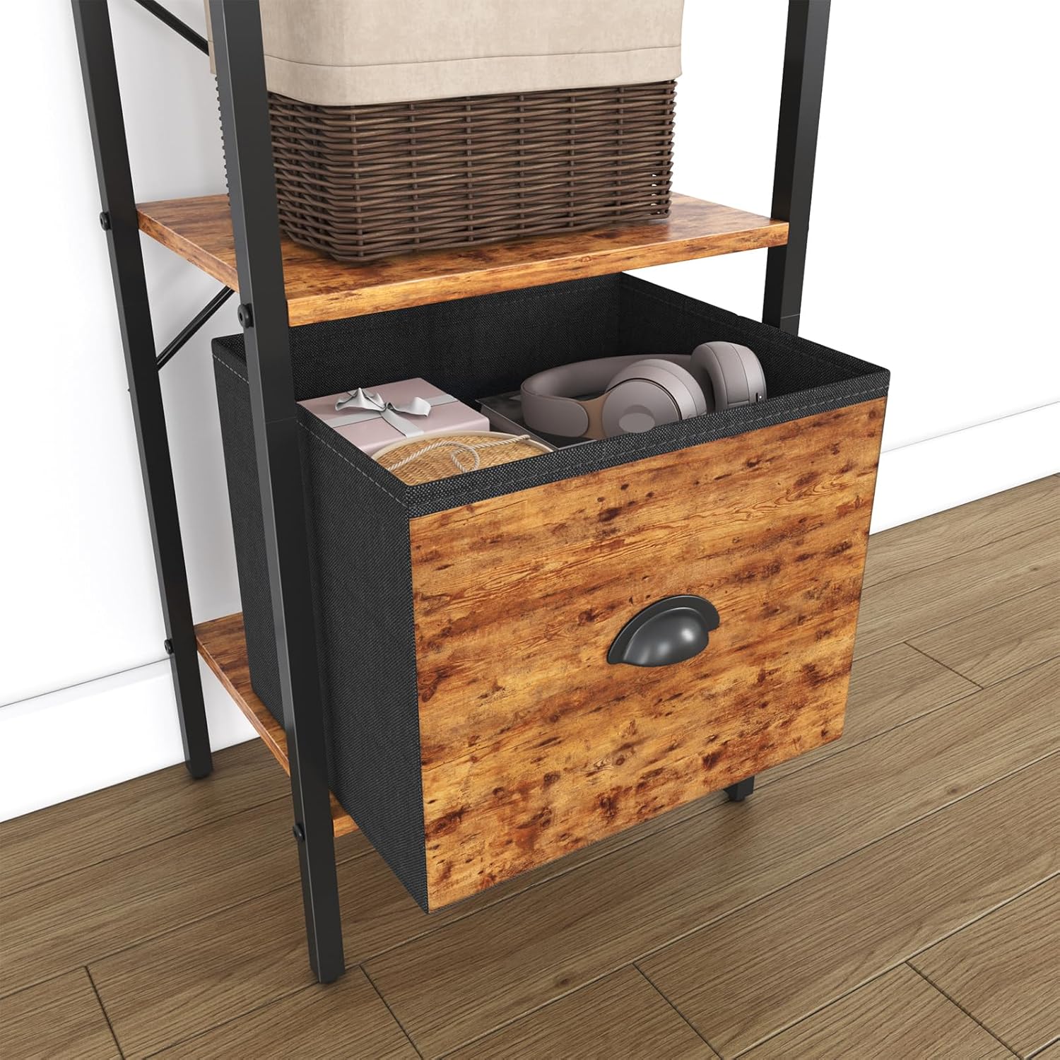 5 Tier Bookshelves,Tall Narrow Bookcases with Shelves, Bookcase Storage Organizer,Industrial Bookshelf with Drawer,Display shelves for Living Room, Bedroom ,Kitchen and Office, Rustic Brown