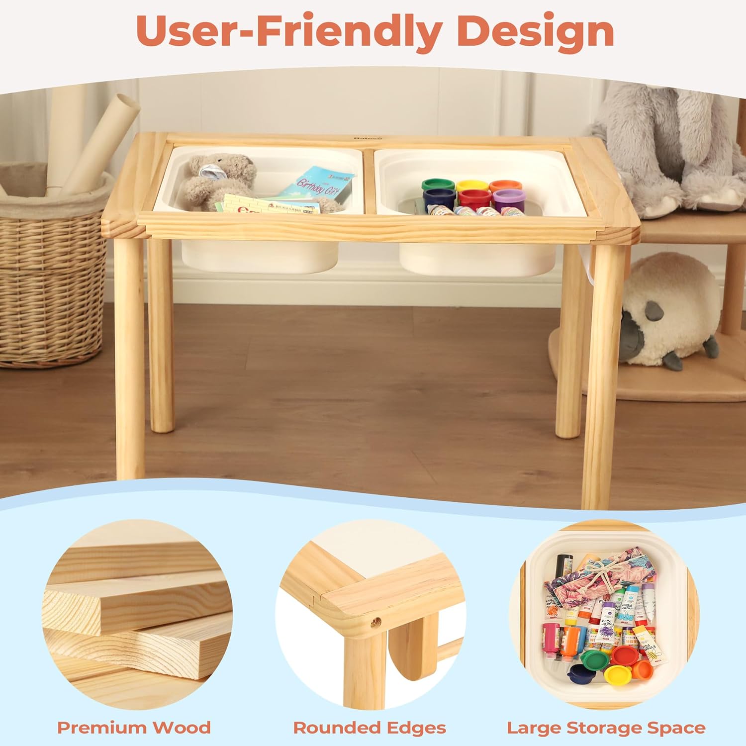 Sensory Table for Toddlers with 2 Storage Bins, Wooden Activity Table with Double-Sided Boards, Sand and Water Play, Indoor & Outdoor Use