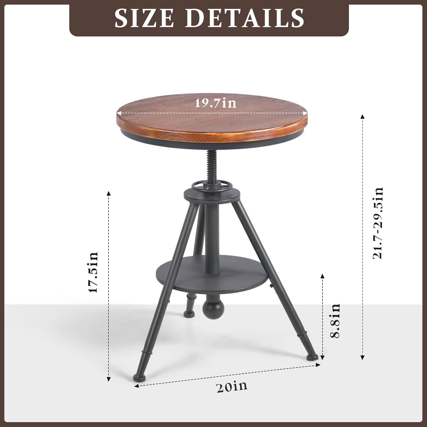 Dia 19.7" Round Pub Table Height Adjustable with 360 Swivel Solid Wood Tabletop for Dining Bistro Cafe Home Bar, Rustic Brown