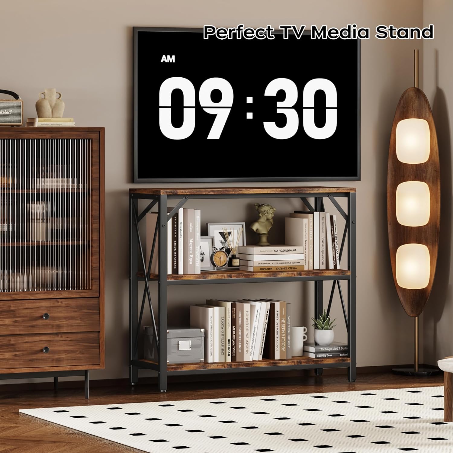 Homeiju Console Table 31.5" Width, 3-Tier Entryway Table with Storage, Industrial Sofa Table with Open Shelves, Foyer Tables for Entryway, Hallway, Kitchen, Living Room and Bedroom, Rustic Brown