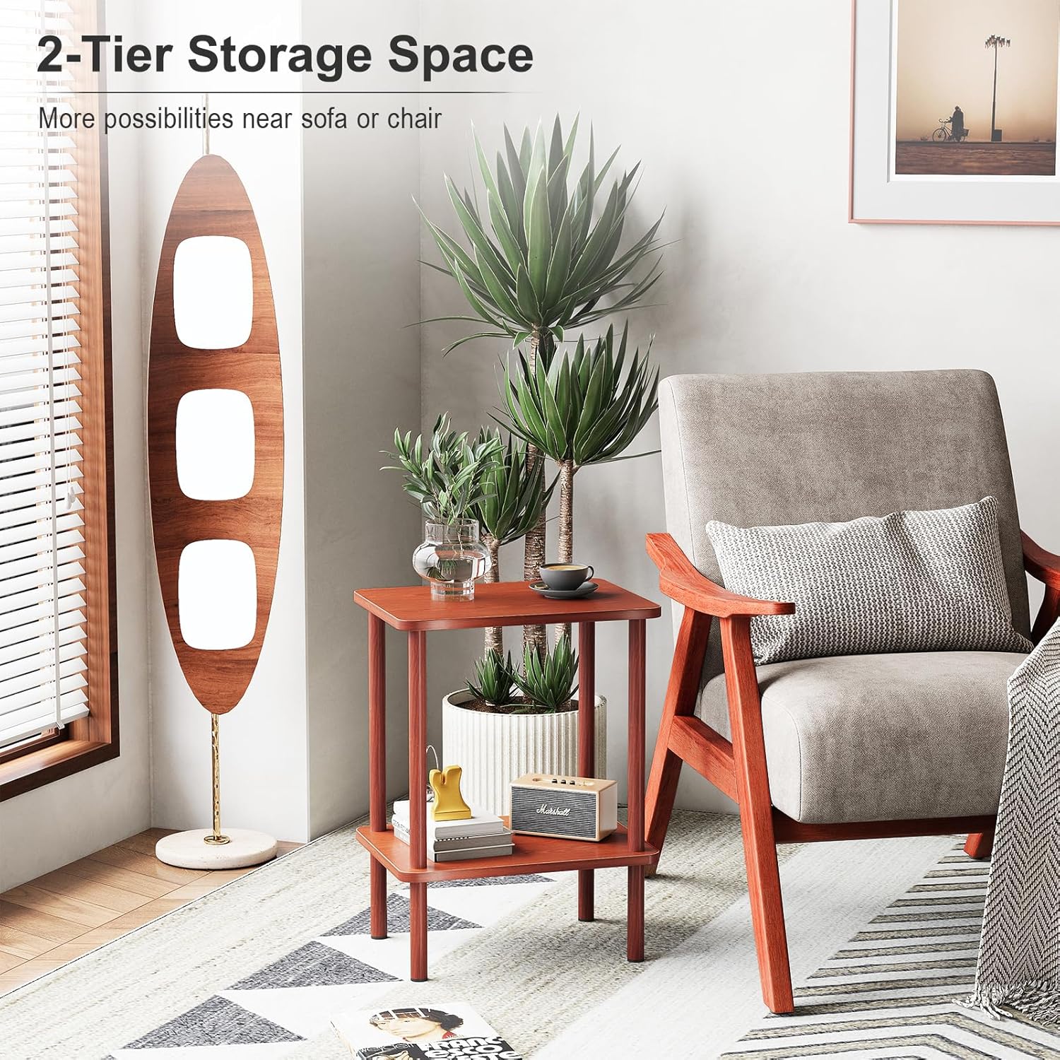 - 【2 TIER VERSATILE END TABLE】-This 2 tier small side table can storage many essentials, and can be matched with various home decoration styles. You can put it in the living room, bedroom, balcony study room, nursery room or outdoor for placing books, coffee, alarm clock, potted plants, toys, etc.