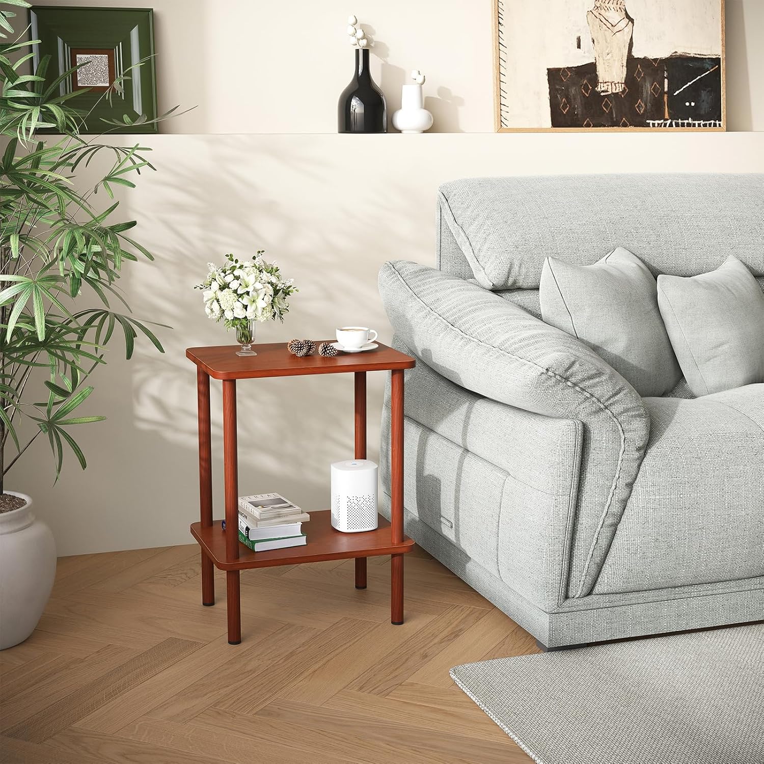 Apicizon 2 Tier End Table Set of 2, Small Side Table with Solid Wood Legs, Boho Bedside Table with Storage Shelf, Nightstand for Small Spaces, Bedroom, Living Room, Entryway, Vintage Brown