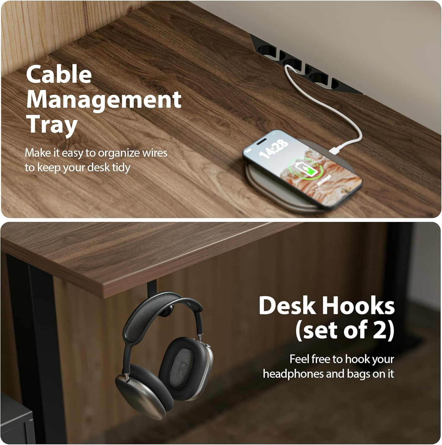 - 「63" Ample Workspace」63*55" L-shaped adjustable height desk is perfect for home office and gaming by providing large space. Extra-large space easily holds 3 desktop PCs, 1 laptop, and other office accessories.