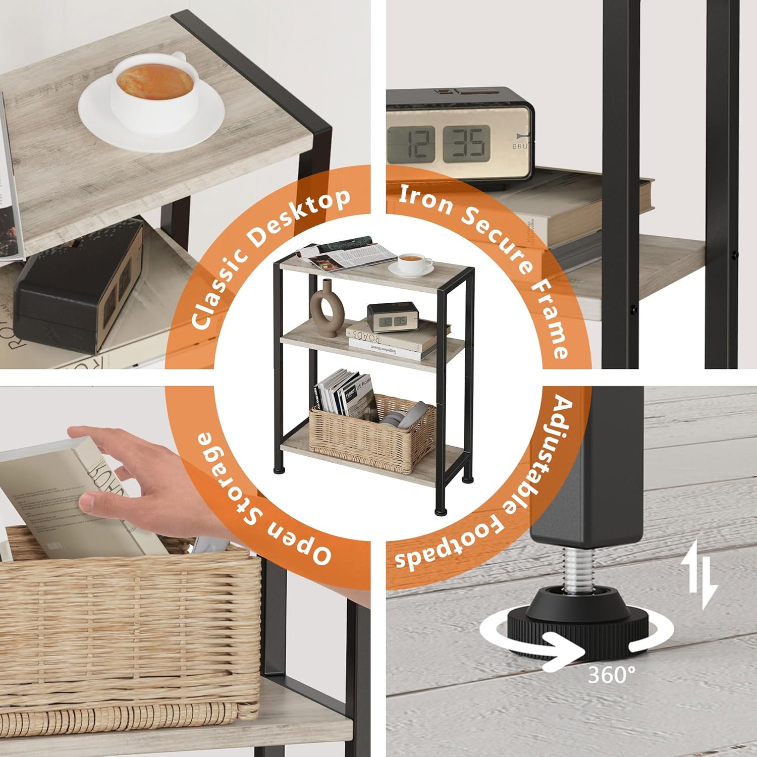 3-Tier Side Table, Small EndTable, Sofa SideTable for Narrow Spaces, Slim EndTable, NightstandTable, Skinny Bedside Table, for Living Room, Bedroom, Office, Greige