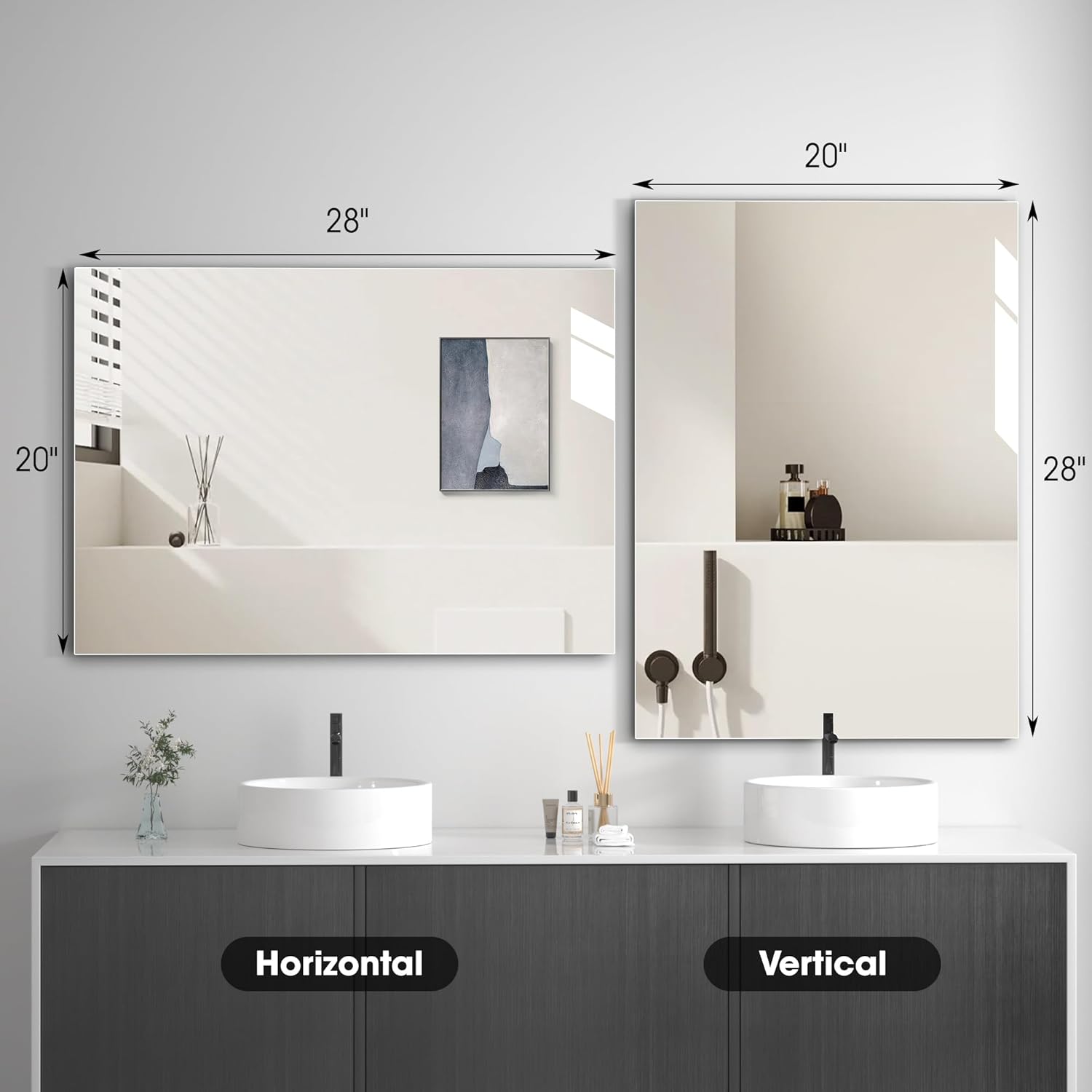 Hasipu Bathroom Mirror for Wall Vanity Mirror 20"x28"-2pcs, Frameless Mirror for Bathroom Sink, Rectangle Modern Horizontal or Vertical