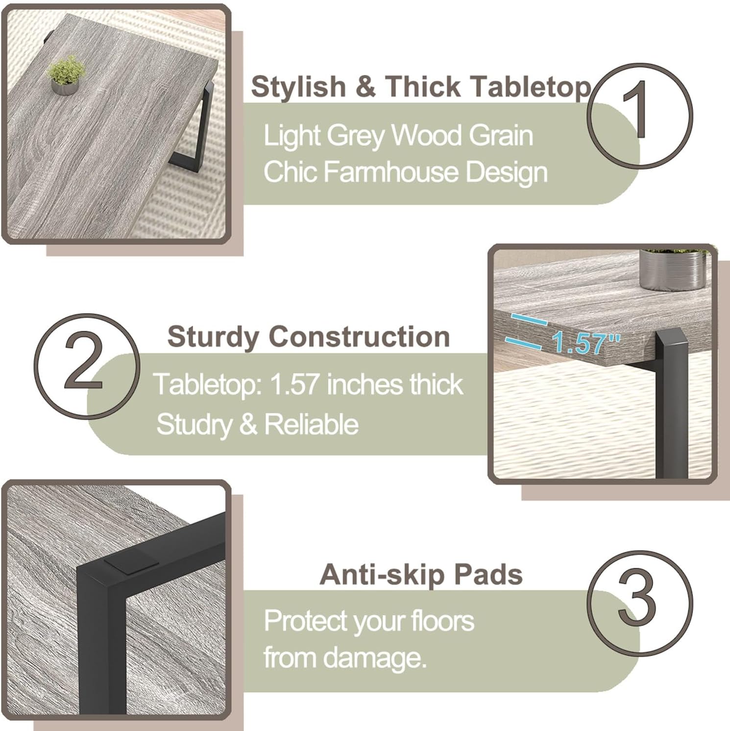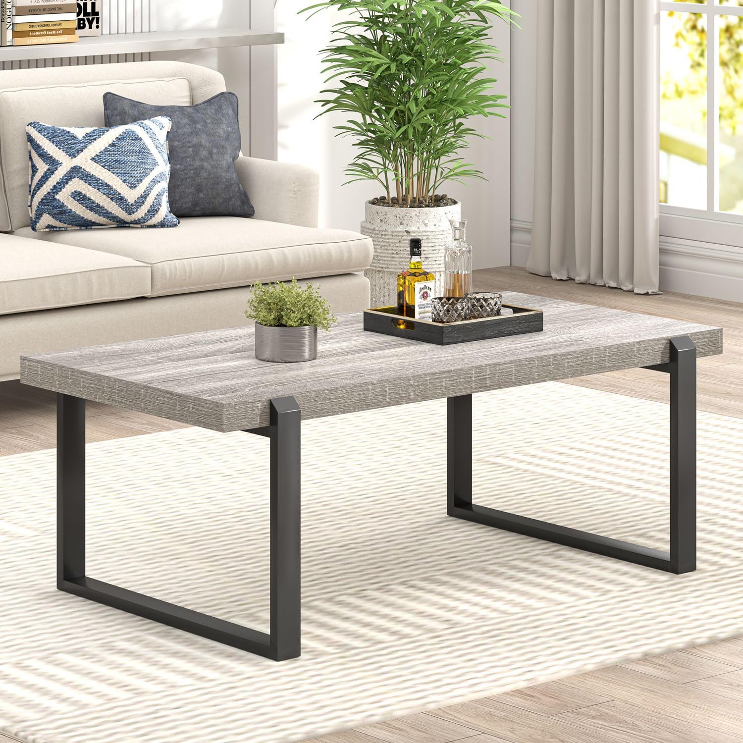 - Rustic Modern Design: This coffee table features light grey wood grain surface paired with black metal frame. Its simple clean lines and minimalist design make it a versatile piece that complements industrial, retro, and contemporary living spaces