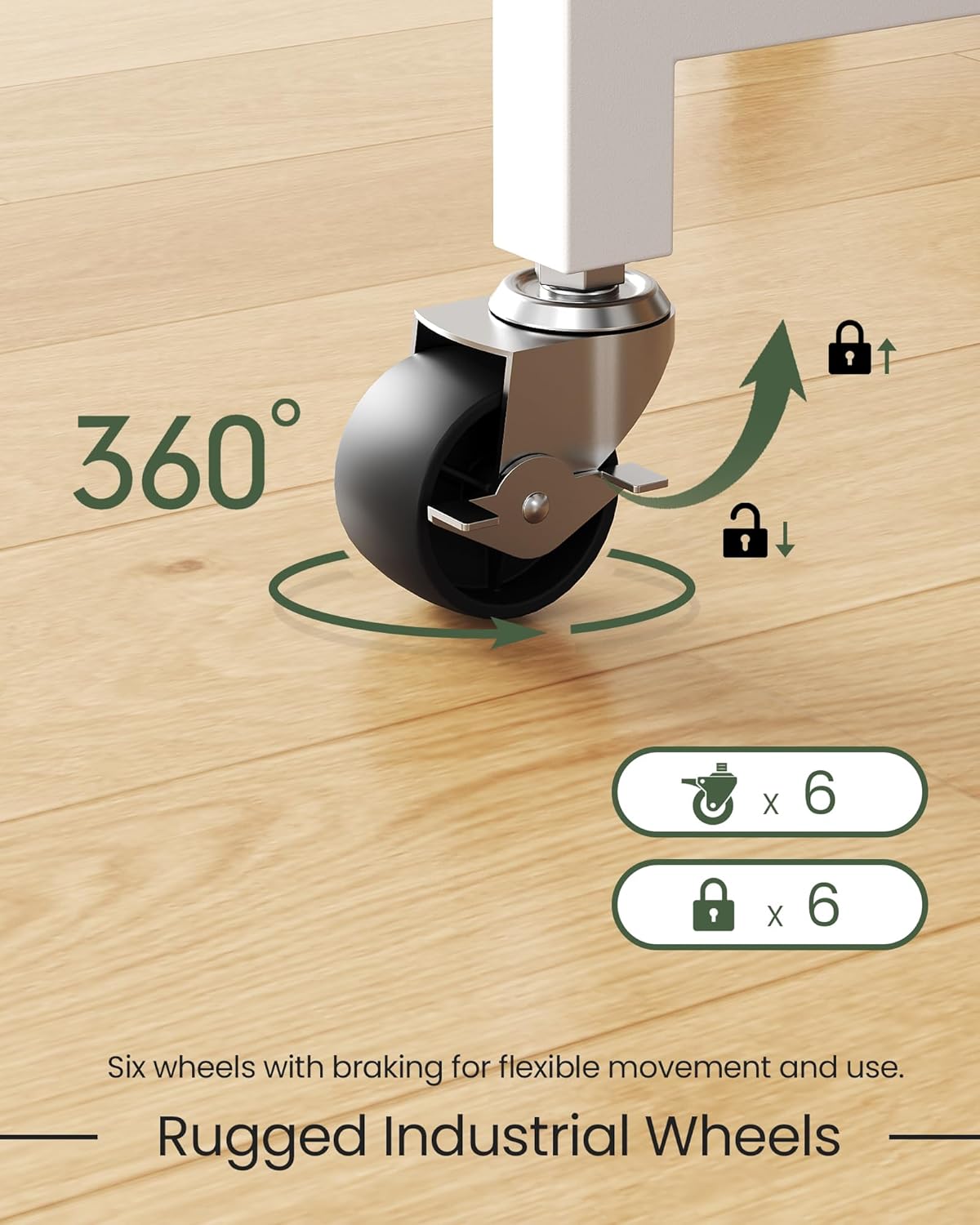 - Easy Movement and Braking: This dining table is equipped with 6 universal, smooth industrial wheels that provide easy and flexible movement in any direction. The 6 rollers with brakes allow it to be securely locked in place. Go or stop, it's all up to you