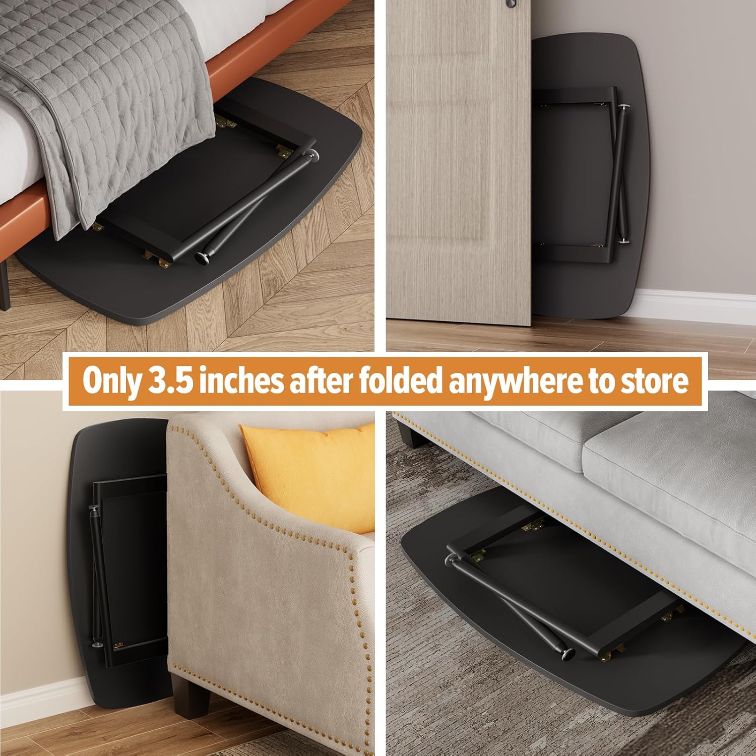 - 【Portable Small Coffee table】Product dimensions are 31.5"D x 15.7"W x3.5"H when it is folded up,very slim to store easily behind a door, under the bed or couch, small corner space, or RV etc. when not in use, keeping the tidy of the room.