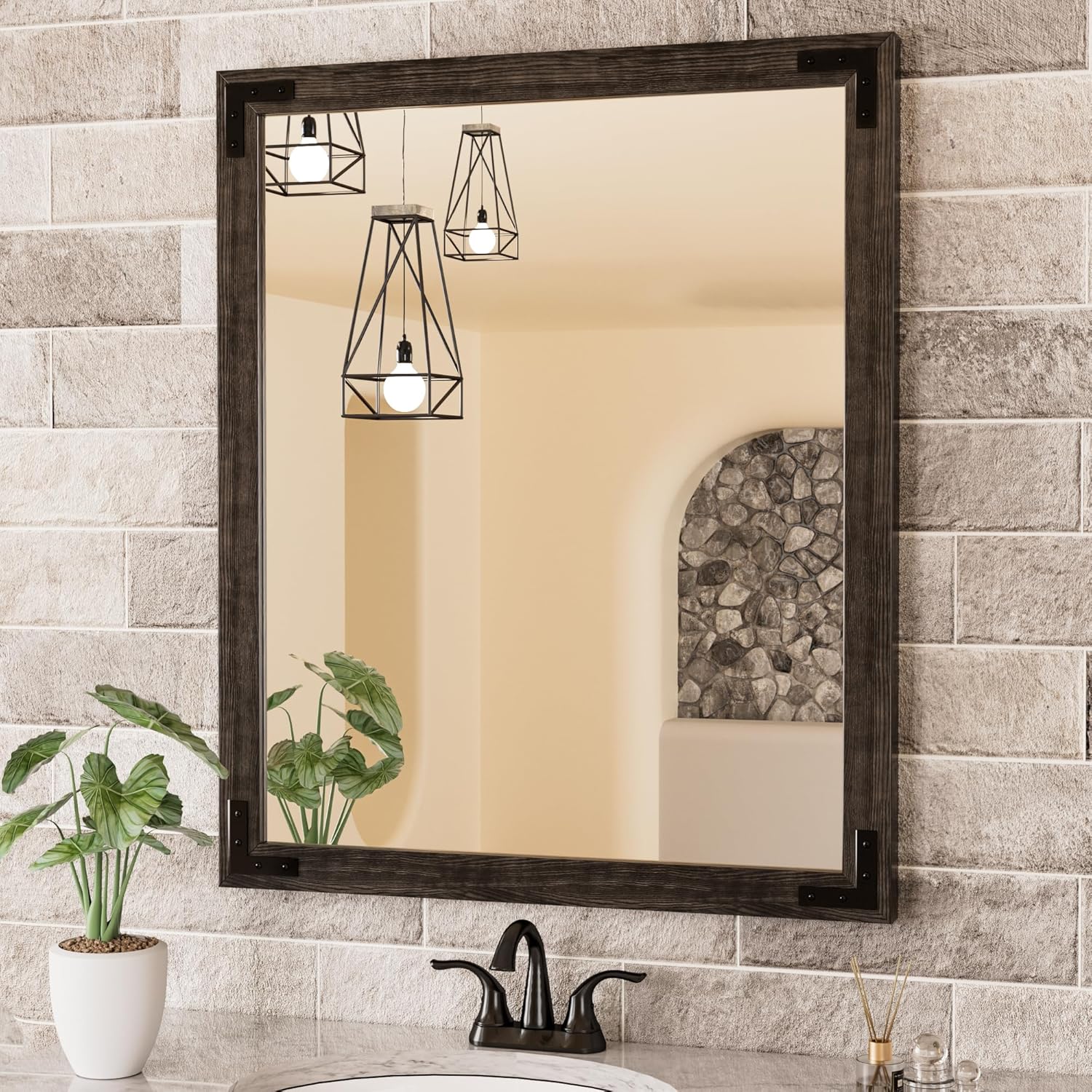- 【Rustic Pine Solid Wood Frame】TETOTE rustic black wooden bathroom mirror for over sink is made of premium pine solid wood, and its natural pine grain is full of rustic chic charm and farmhouse warmth, making it a great addition to brighten up your house in the bathroom, bedroom, living room, entryway, or anywhere. Due to the color of the wood itself, there may be a slight color difference when purchasing 2 pieces at the same time.