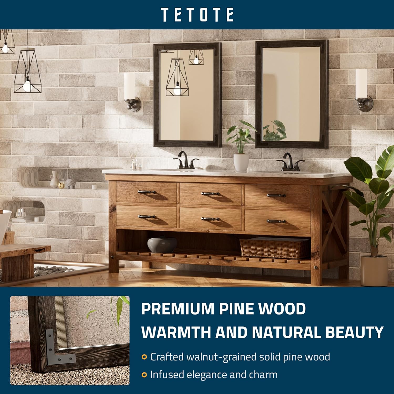 - 【Rustic Pine Solid Wood Frame】TETOTE black wood frame mirror is made of premium pine solid wood, and its natural pine grain is full of rustic chic charm and farmhouse warmth, making it a great addition to brighten up your house in the bathroom, bedroom, living room, entryway, or anywhere.Due to the color of the wood itself, there may be a slight color difference when purchasing 2 pieces at the same time.