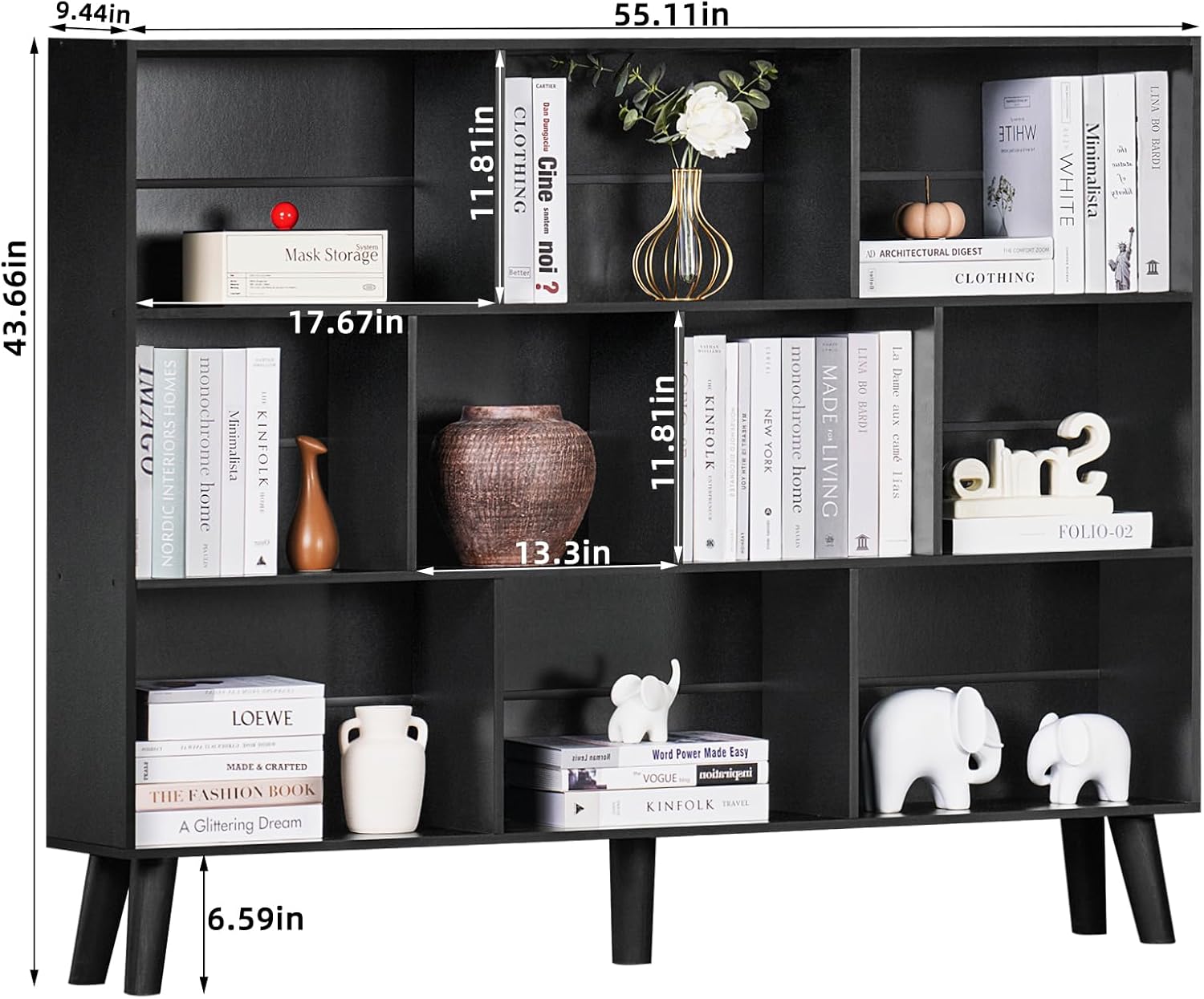 - 【More Storage Space】The newly upgraded black wide bookcase has more and lager storage cubes, and its crisscross partition design can provide you with more classification storage space. You can fill this large 3 shelf display cabinet with your beloved books, magazines, decorations, etc., making 10 cube book case the most eye-catching presence in your room!