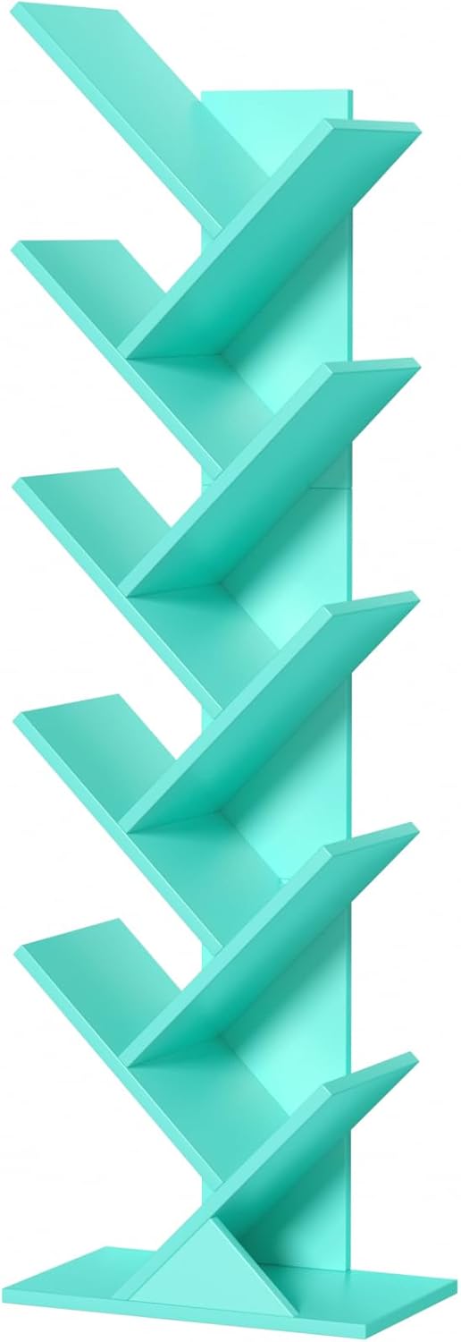 10 Tier Tree Book Shelf, Floor Standing Wood Bookshelf for Narrow Space, Storage Organizer Bookshelves for Books/CDs/Magazine, Bookcase with Shelves for Home Office, Living Room - Green