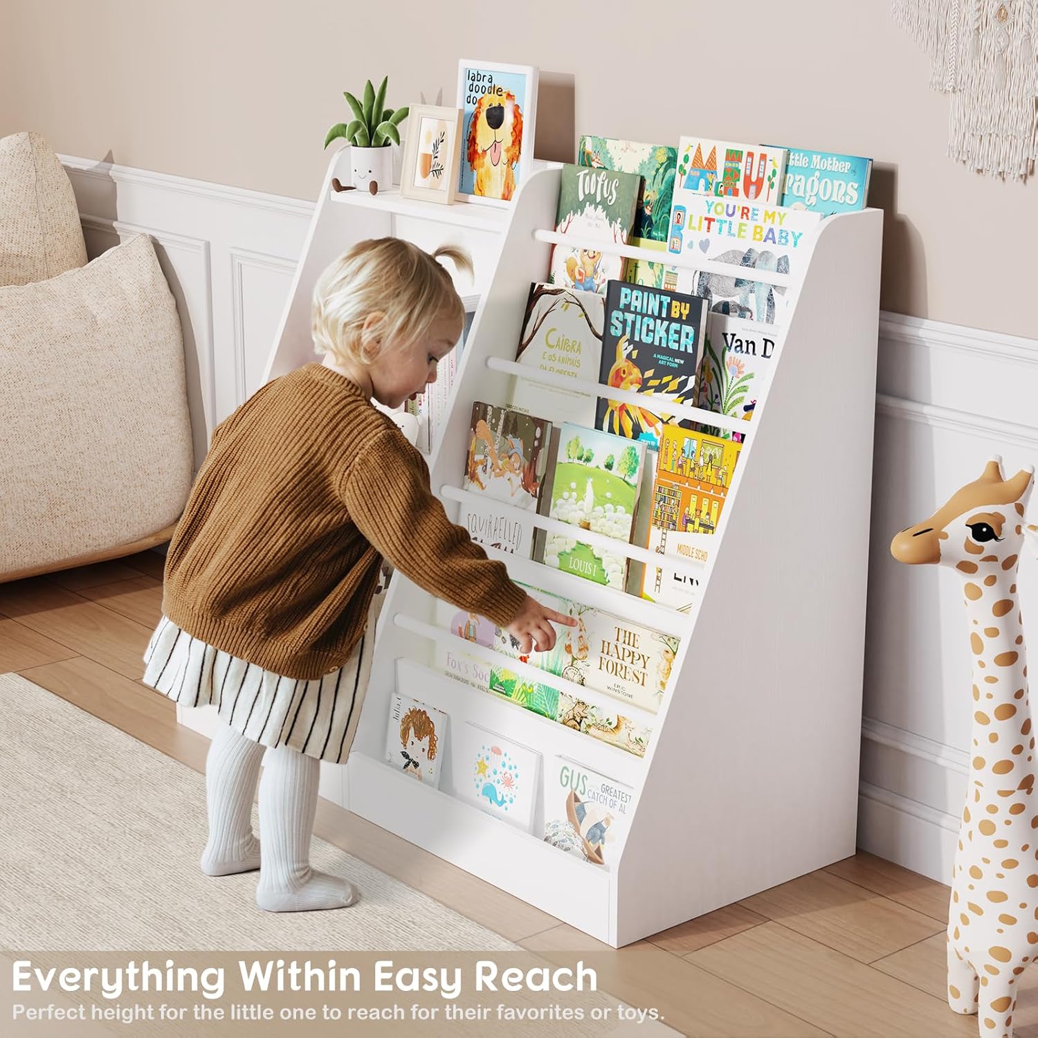 - 【Front Facing Bookshelf】This kids bookcase presents books in a visually appealing and easy-to-understand way by displaying them on the front, allowing children to choose their own books and toys easily and independently, and cultivating independent reading and a love of learning from an early age