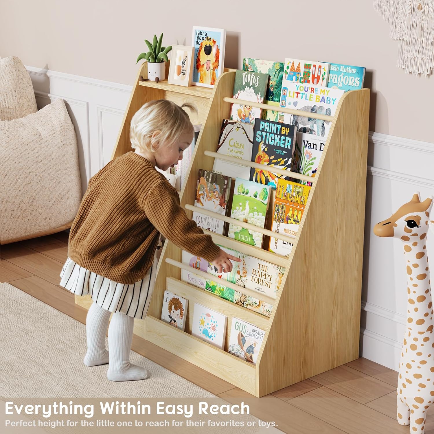 Lkeiyay 5 Tier Kids Bookshelf,Baby Bookshelf,Toy and Book Storage for Kids,Book Display Shelf,Natural