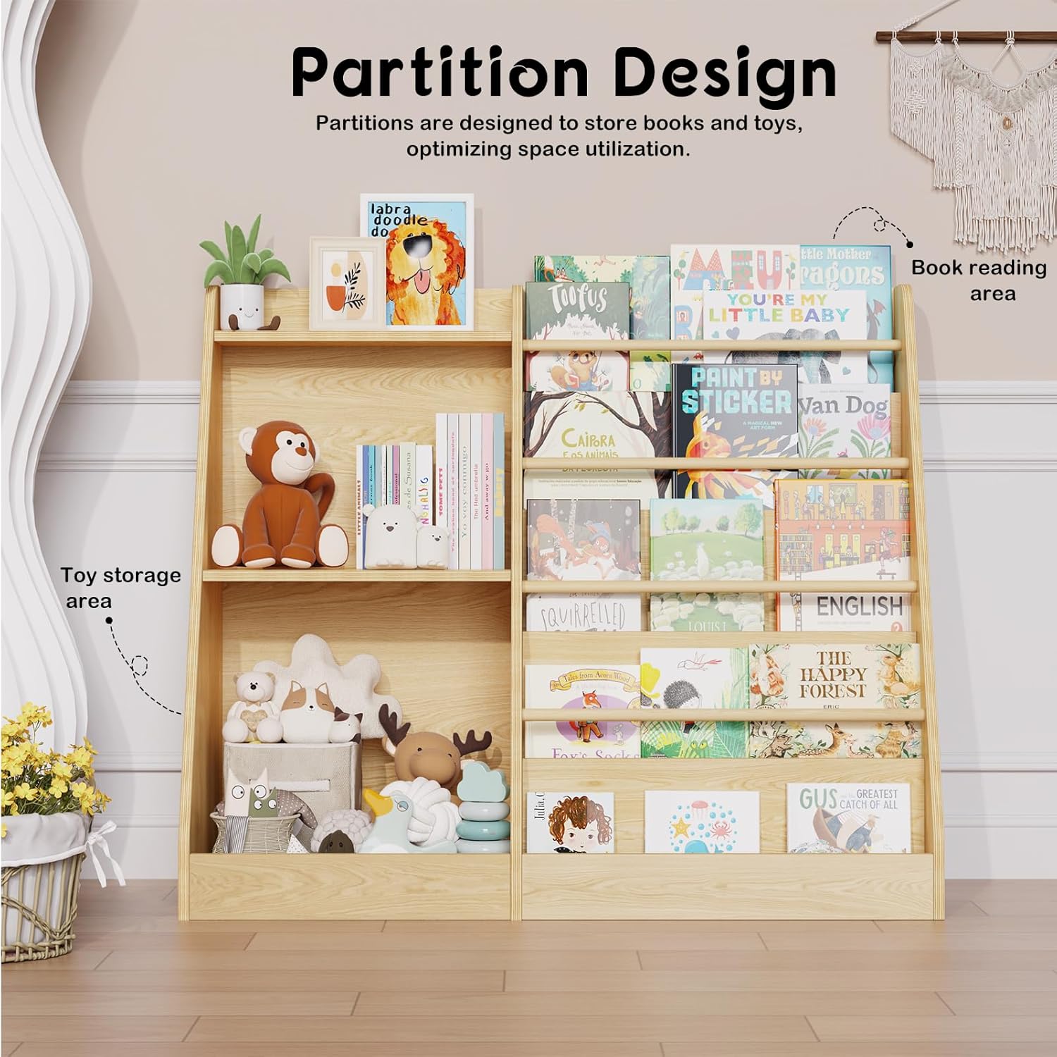 - 【Front Facing Bookshelf】This montessori book shelf presents books in a visually appealing and easy-to-understand way by displaying them on the front, allowing children to choose their own books and toys easily and independently, and cultivating independent reading and a love of learning from an early age