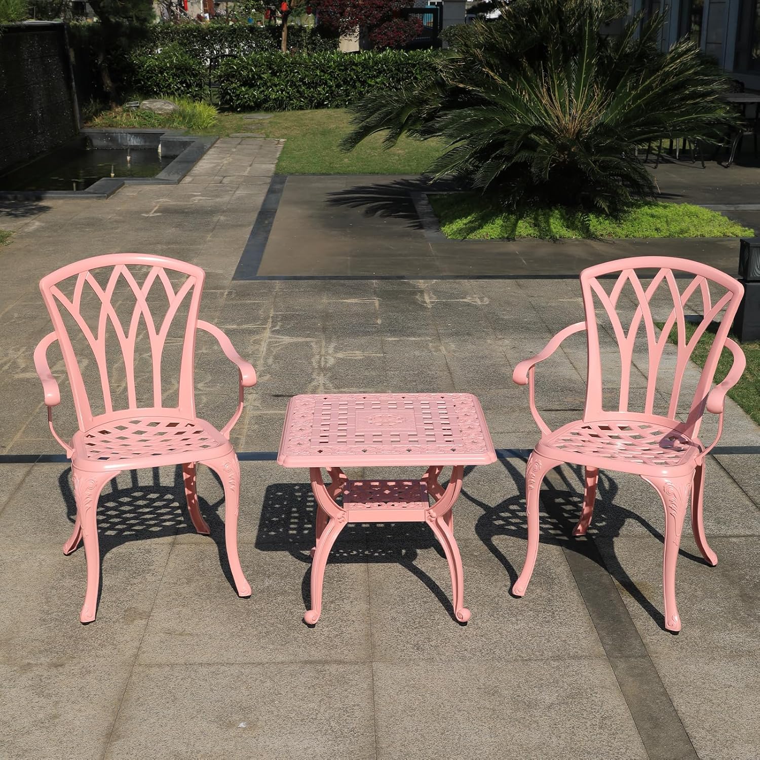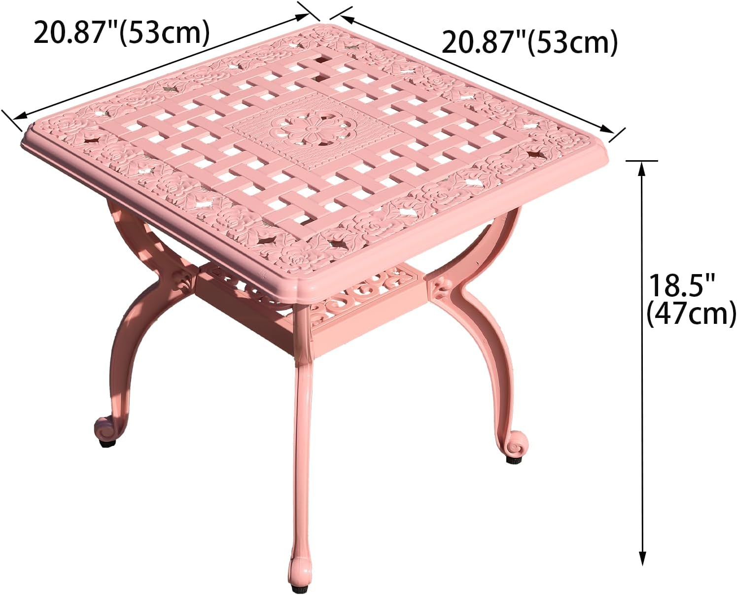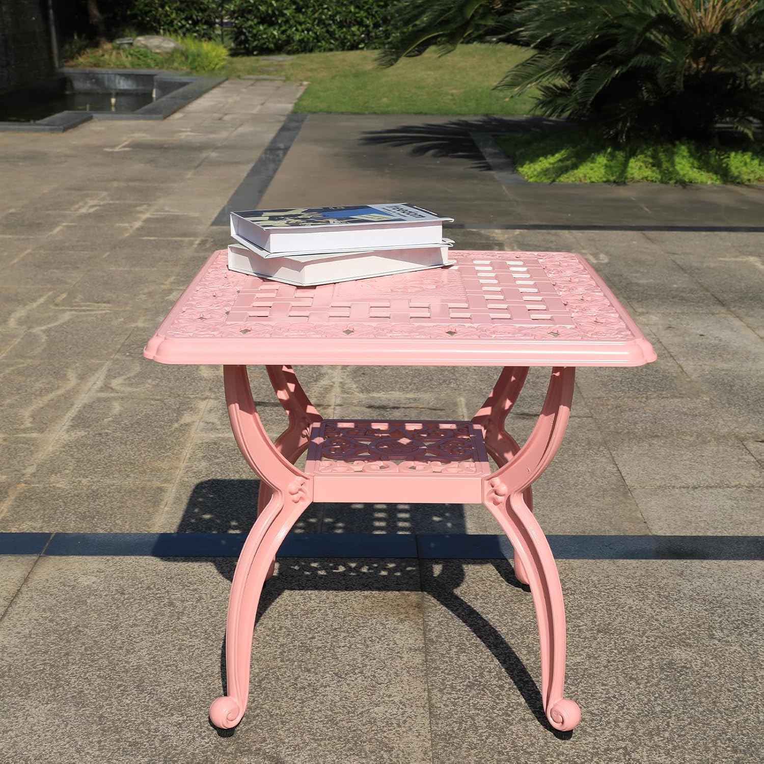 Cast Aluminum Outdoor Side Table,Small Patio Table,Outdoor Coffee Tables for Patio,Garden,Balcony, for All Weather (Pink, Square)