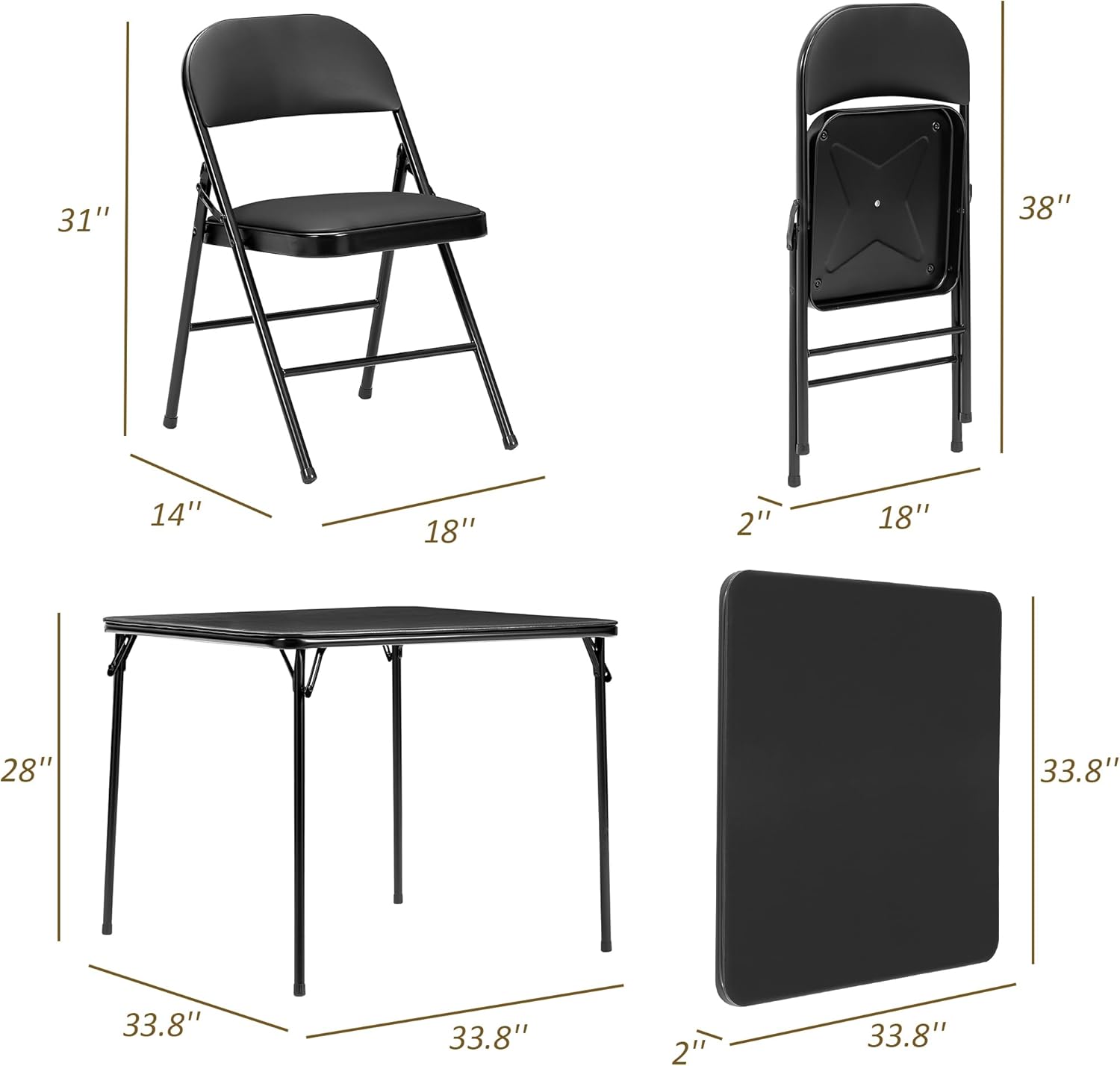 VECELO Folding Card Table and Chair Set of 5 Portable with Padded Tabletop, No Assembly Required, Black