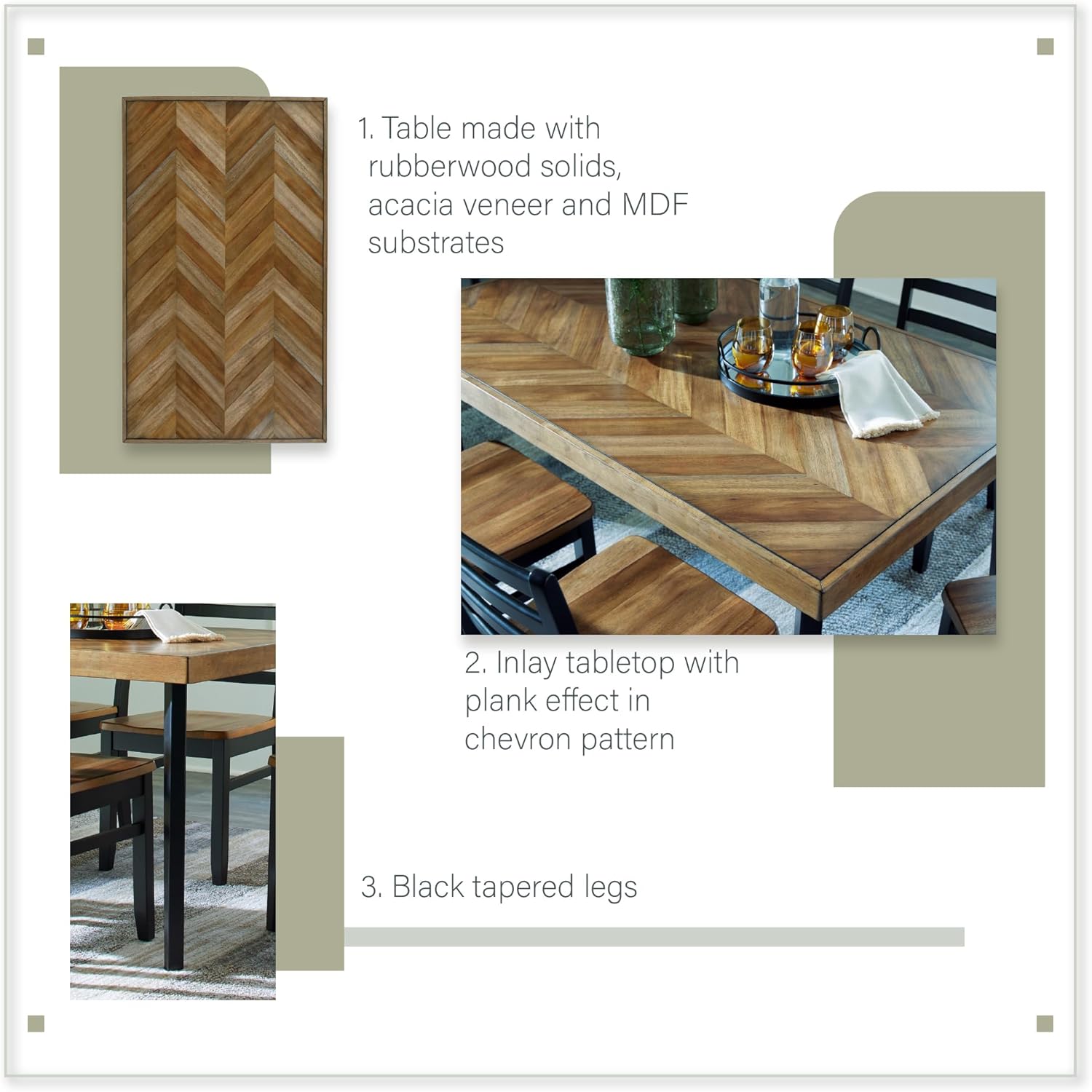 Signature Design by Ashley Blondon Rustic Chevron Dining Table and 6 Chairs, Set of 7, Black & Light Brown
