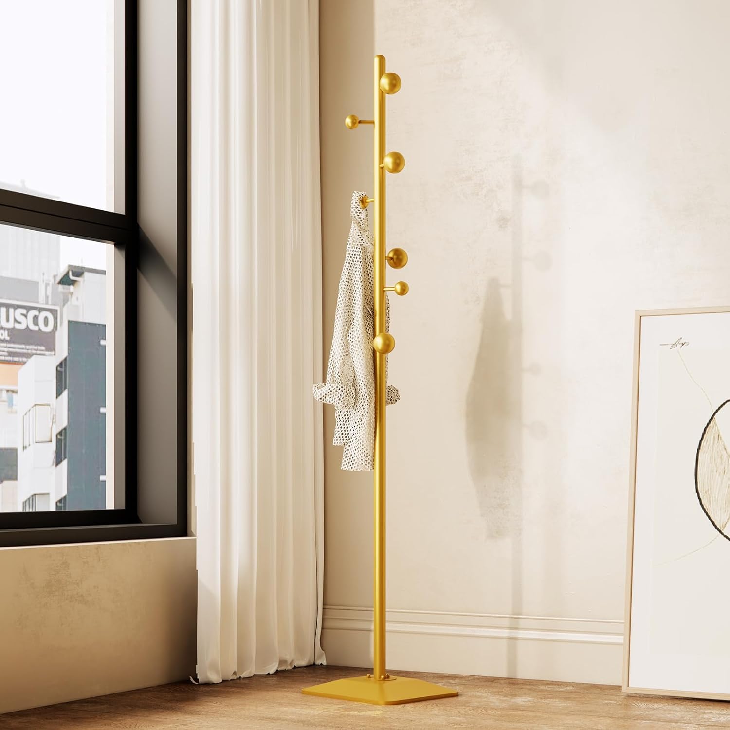 - 【Timeless Sphere Hook Design】The coat rack freestanding With 4 large and 3 small smoothly polished metal spheres, these hooks are guaranteed never to damage your clothing.Their uniquely elegant design brings a fashionable flair to your office, hallway, entryway, entrance, bedroom, and more, enhancing your space with their distinct and exquisite beauty.