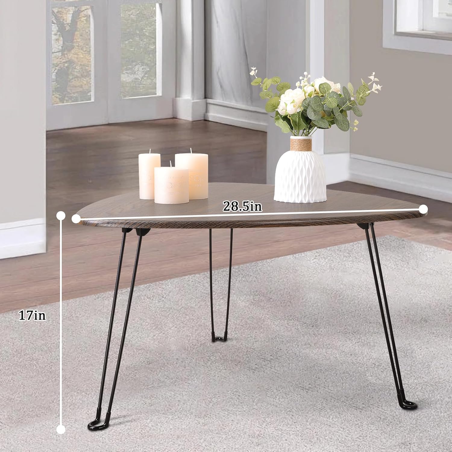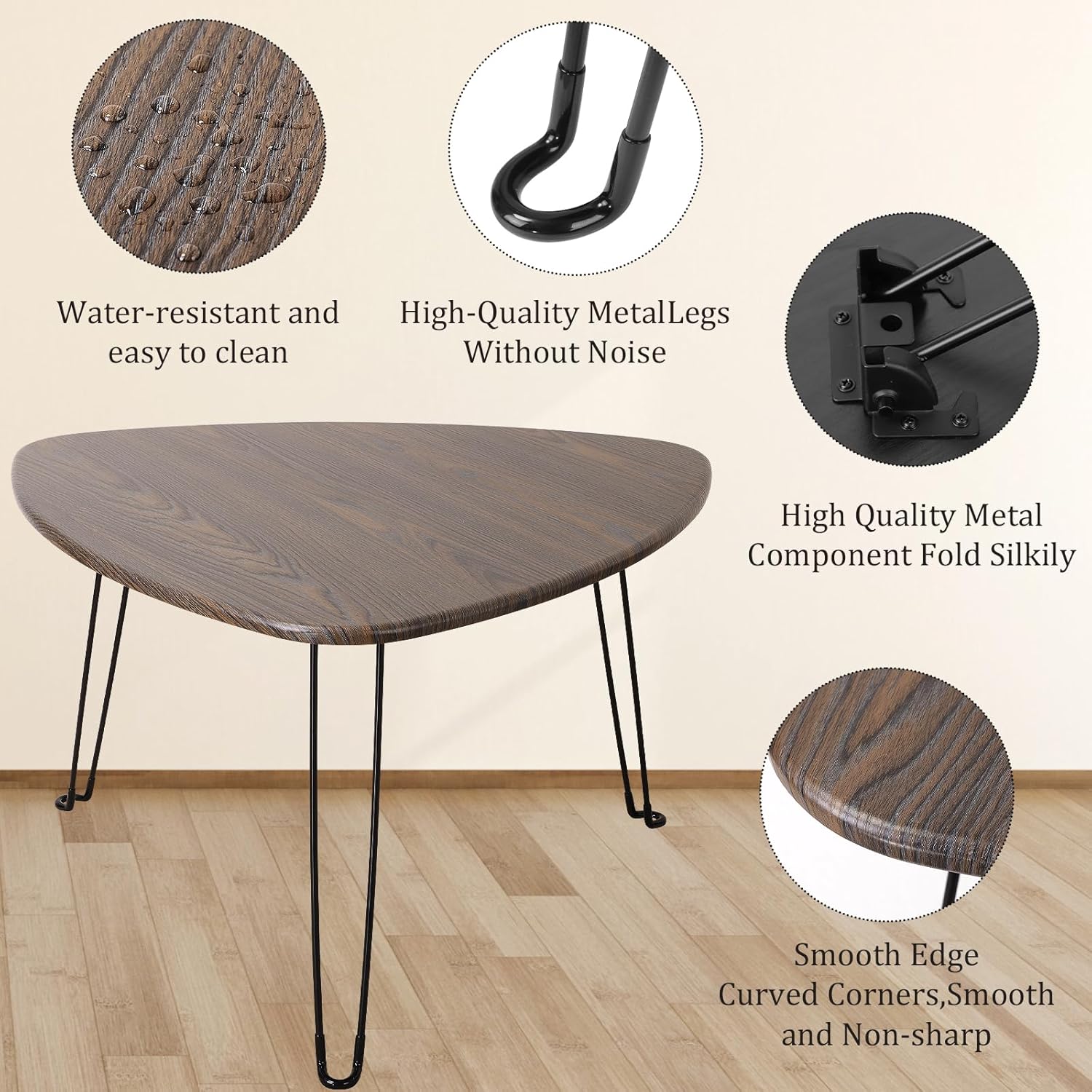Folding Coffee Tables for Small Spaces Foldable Industrial Sofa Center Table Triangle Design Wood Framed Coffee Table Mid Century Rustic Brown Floor Desk for Living Room Balcony