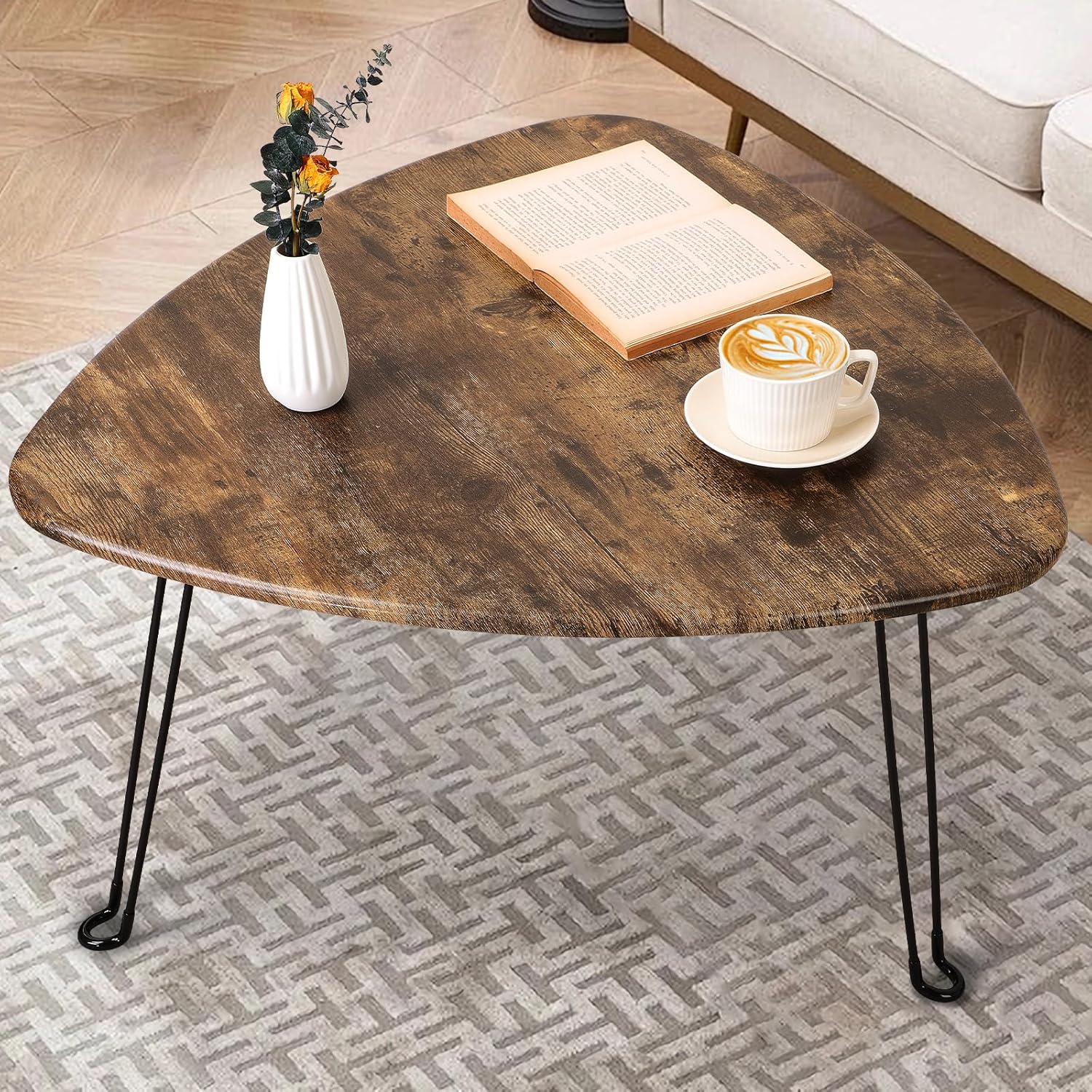 - EXCELLENT CRAFT : Built with high quality materials, the structure is solid and stands the test of time. Delicate surface treatment, smooth as a mirror, comfortable to touch. The perfect match of metal table legs and wood texture table top, the triangle coffee table reveals luxury in simplicity, adding a noble flavor to your home