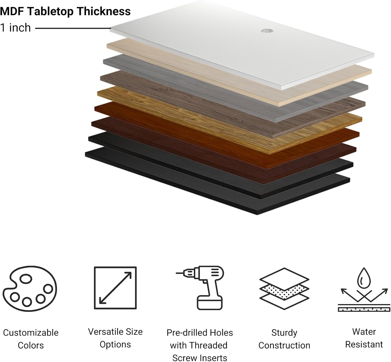 - EASY-CARE LAMINATE TABLETOPS: Choose from a variety of easy-care laminate tabletop options for a sleek and durable surface; Our wood desk available in various colors, these tabletops add a modern and professional look to your workspace, enduring daily use; Whether you need an office table, gamer desk, executive desk, student desk, school desk, or writing desk, we engineered our ergonomic rising desk to meet various needs, providing a functional and stylish solution for any environment