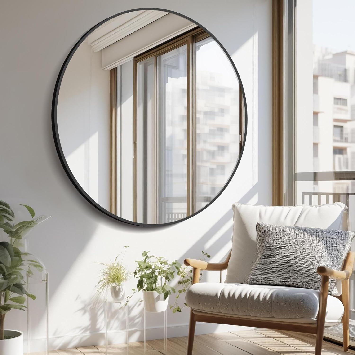 - SAFE AND EASY TO INSTALL: This black round mirror features an smooth round design that adds a soft aesthetic to the space. Our round wall mirror comes with wall mounting hardware and pre-installed hooks for hanging. Easy to install by following the installation instructions.