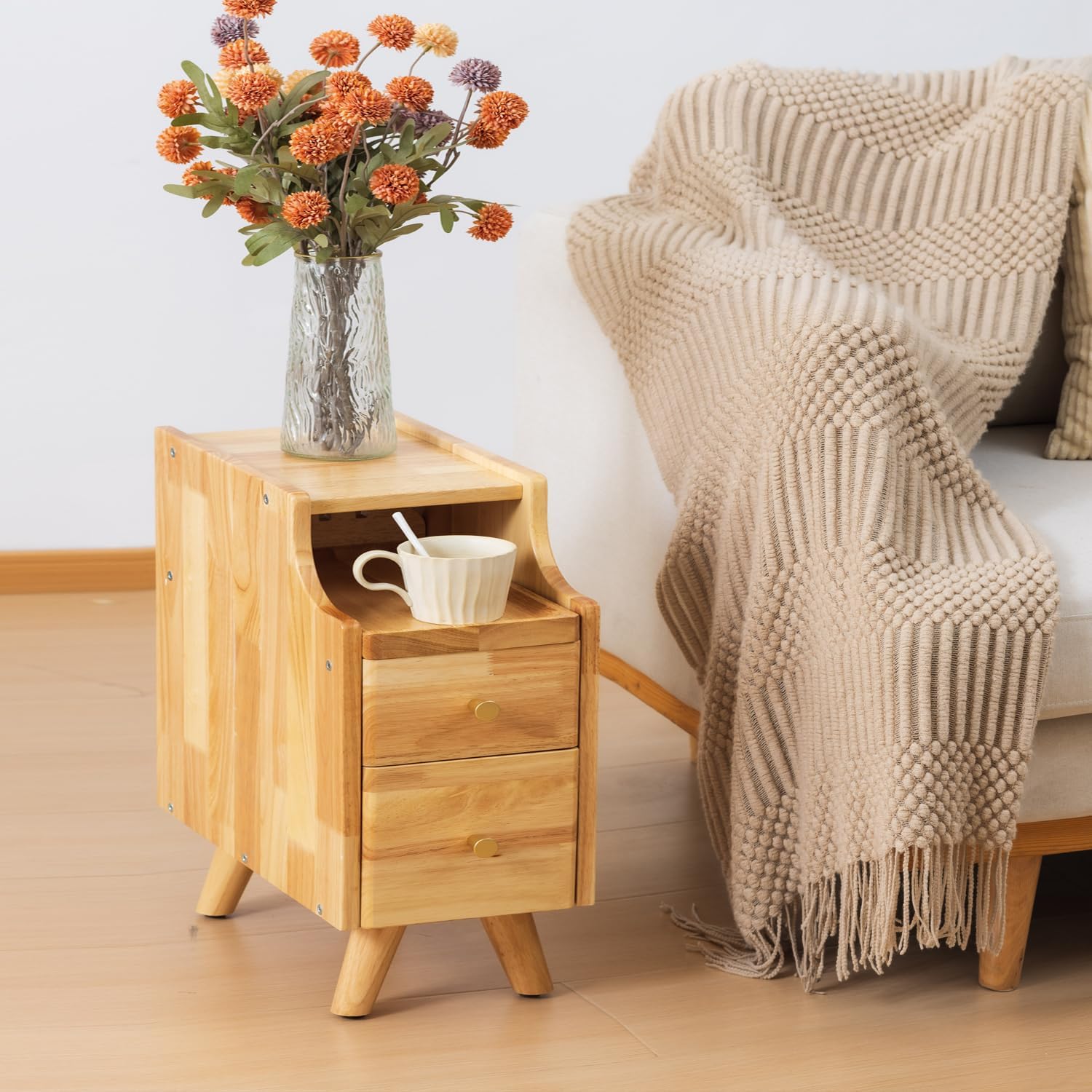 Small Nightstand, Narrow Nightstand, Solid Slim Wood Night Stand for Small Spaces, Couch, Nature Color 9.84in Wide
