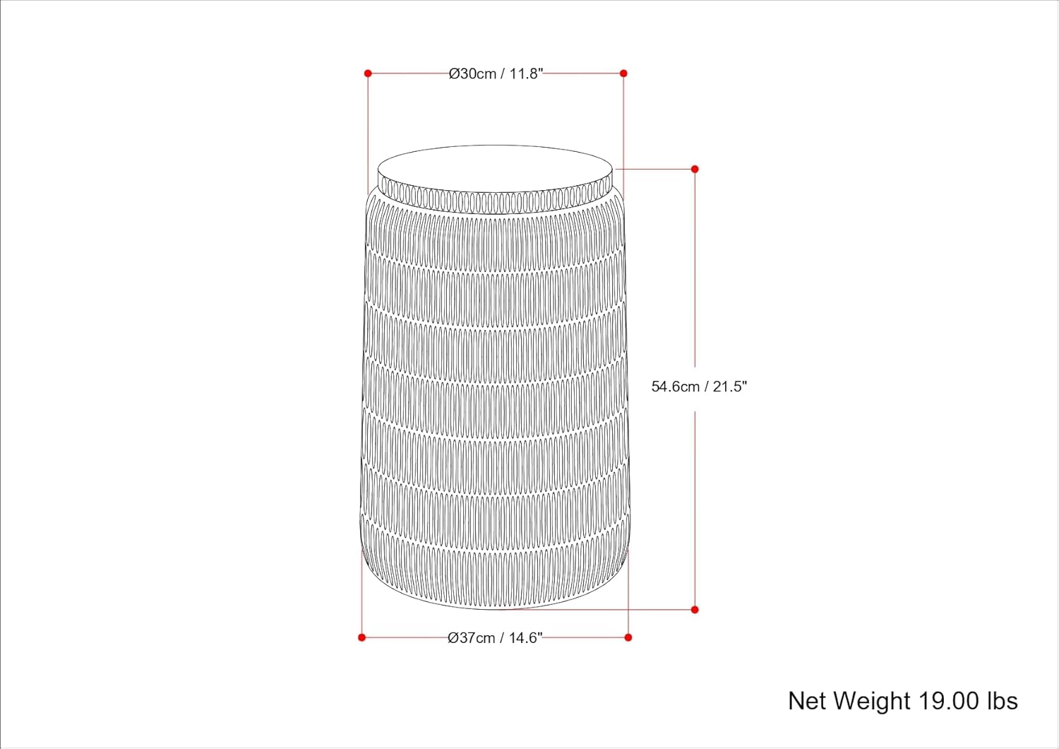 - Product Dimensions : 14.6"D x 14.6"W x 21.5"H