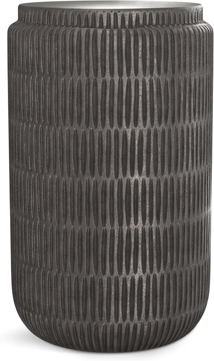 - SLEEK FINISH: Textured graphite finish adds a modern, industrial touch to contemporary interiors; cylindrical shape offers a bold, sculptural presence