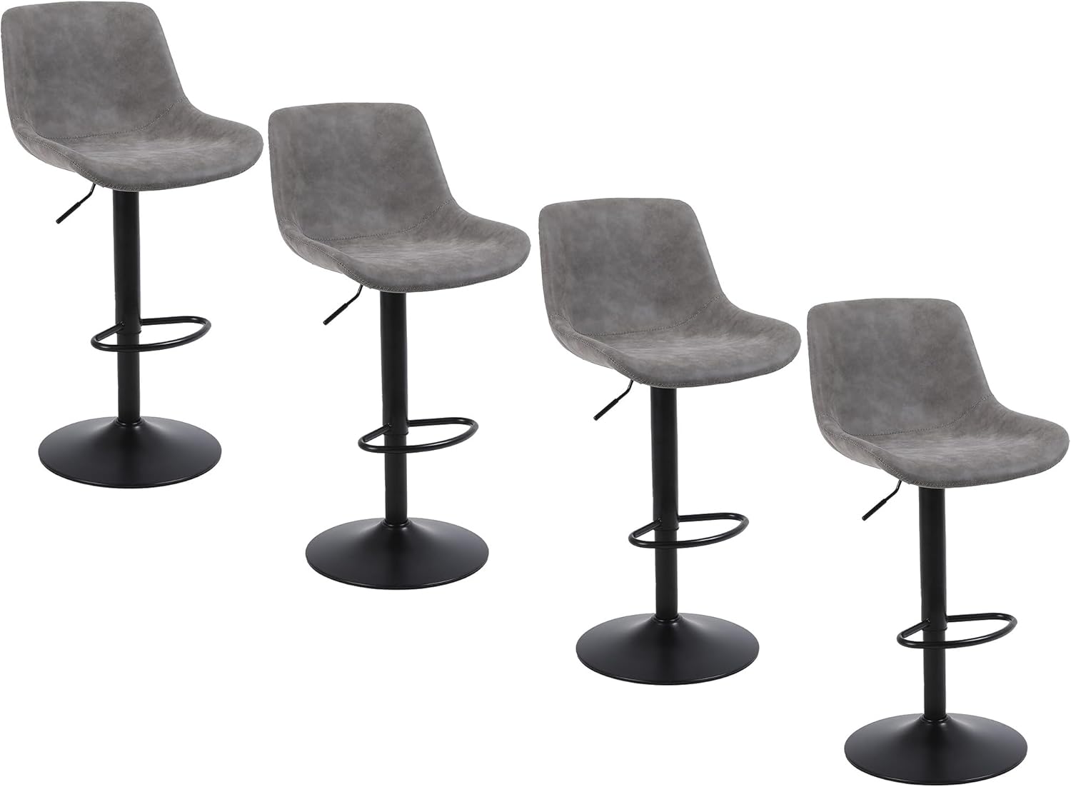 Bar Stools, Swivel Counter Height Barstools with Back, Adjustable Modern Bar Chairs, Tall Armless PU Leather Kitchen Island Stool (Grey, Set of 4)