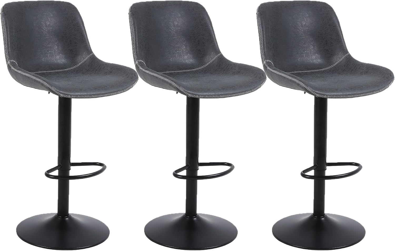Bar Stools, Swivel Counter Height Barstools with Back, Adjustable Modern Bar Chairs, Tall Armless PU Leather Kitchen Island Stool (Black 02, Set of 3)
