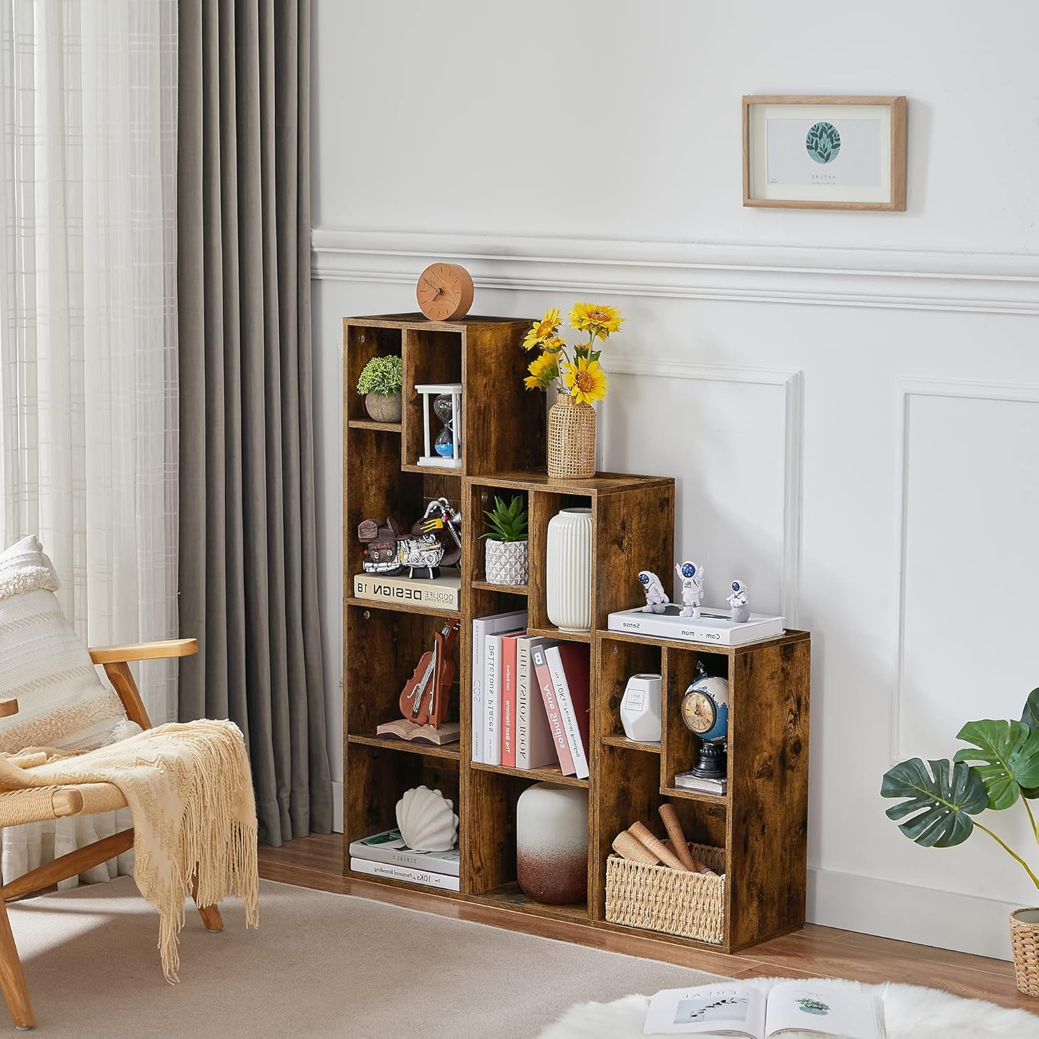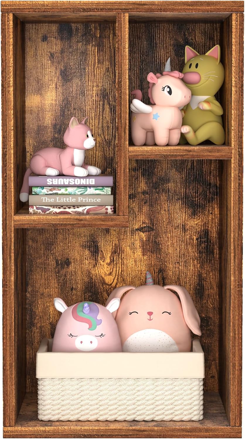 VECELO Small Bookshelf, 3 Cube Shelf, Fits Tallest Hardcovers, Horizontal Available, Modern Storage Organzier for Small Spaces, Vintage Brown