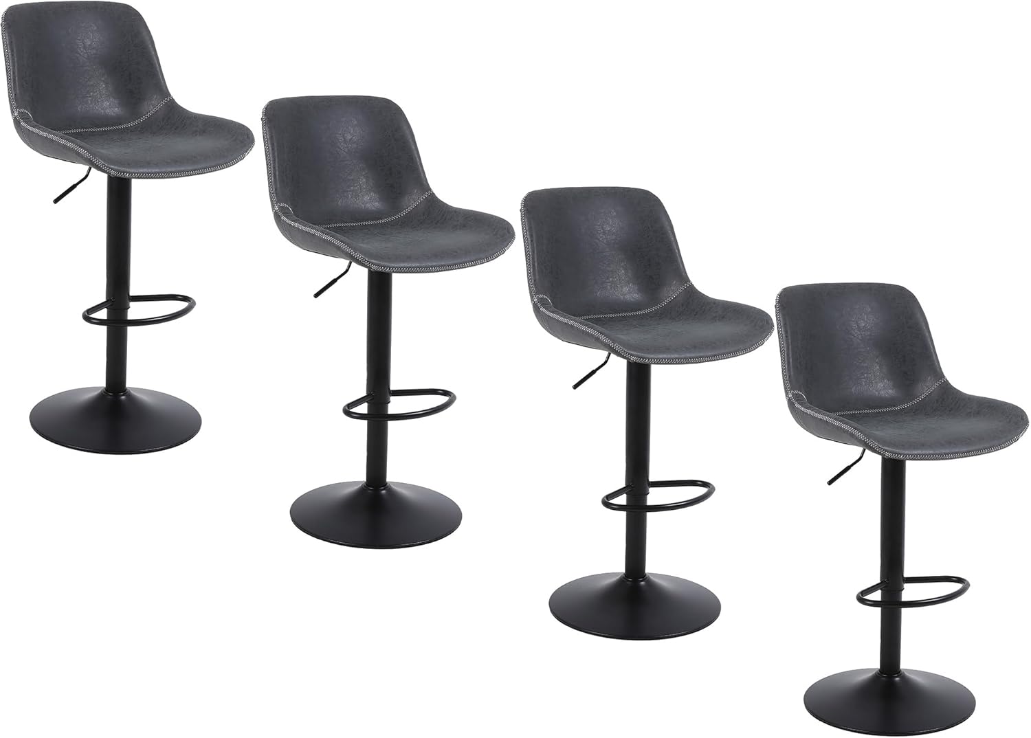 Bar Stools, Swivel Counter Height Barstools with Back, Adjustable Modern Bar Chairs, Tall Armless PU Leather Kitchen Island Stool (Black 02, Set of 4)