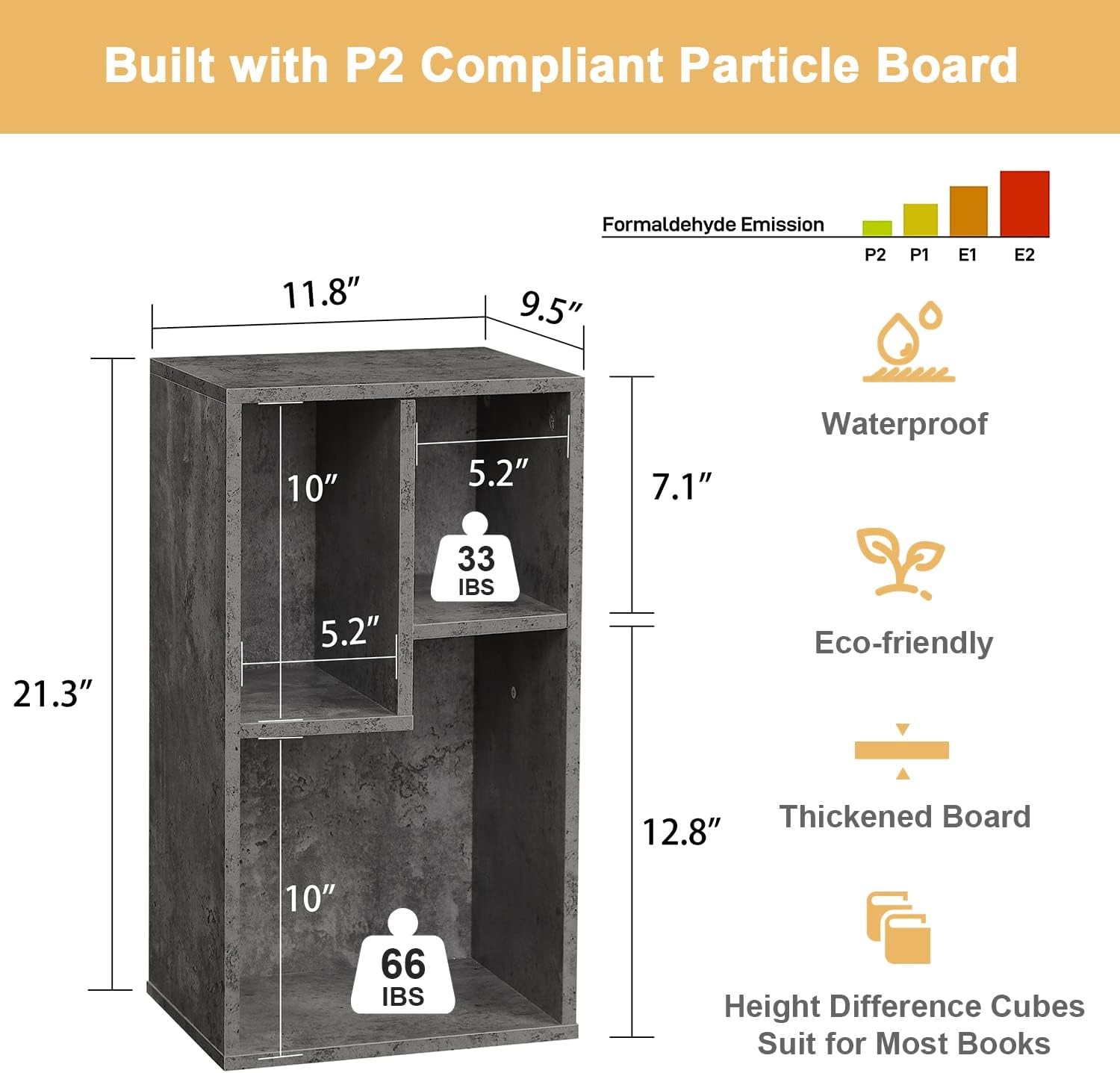 VECELO Small Bookshelf, 3 Cube Shelf, Fits Tallest Hardcovers, Horizontal Available, Modern Storage Organzier for Small Spaces, Modern Gray
